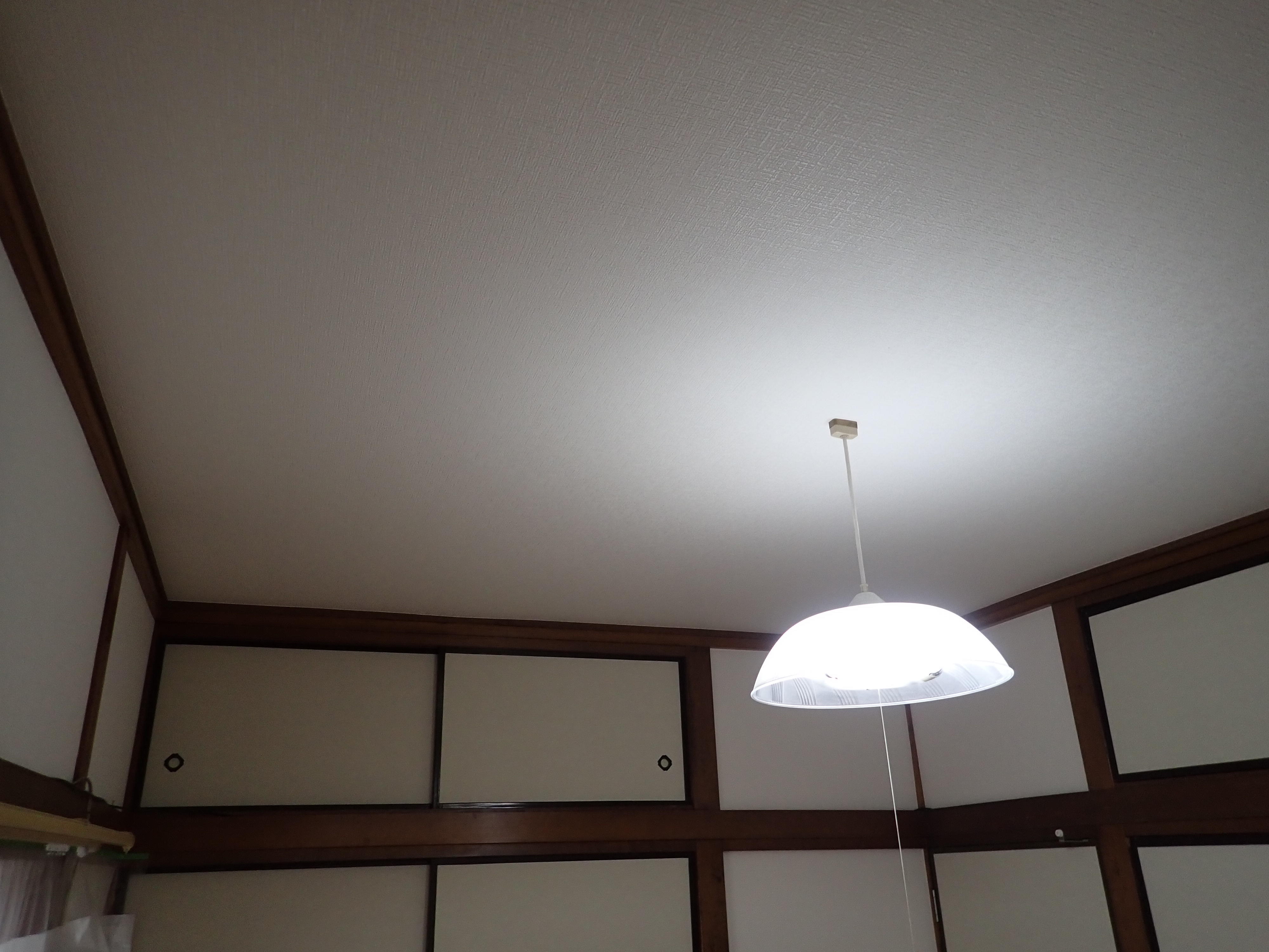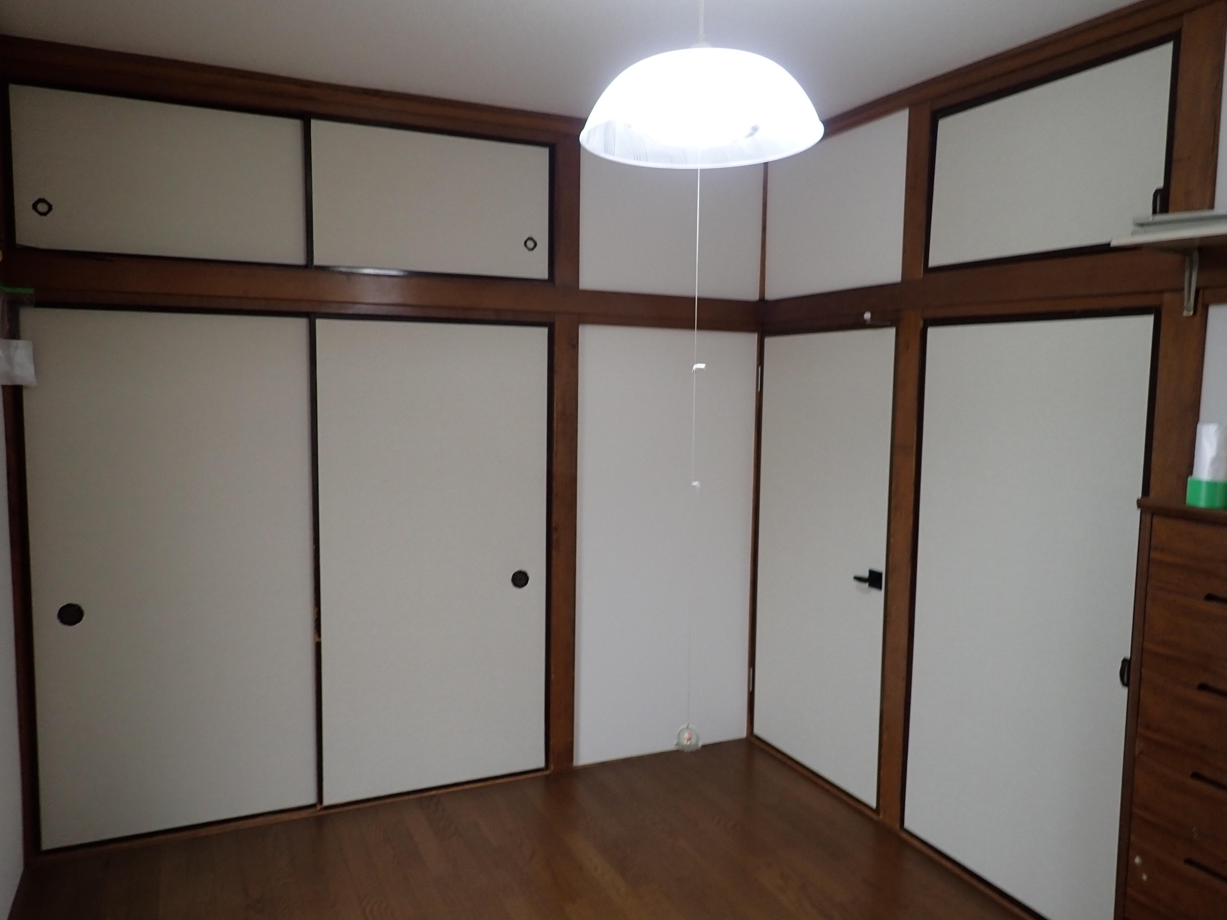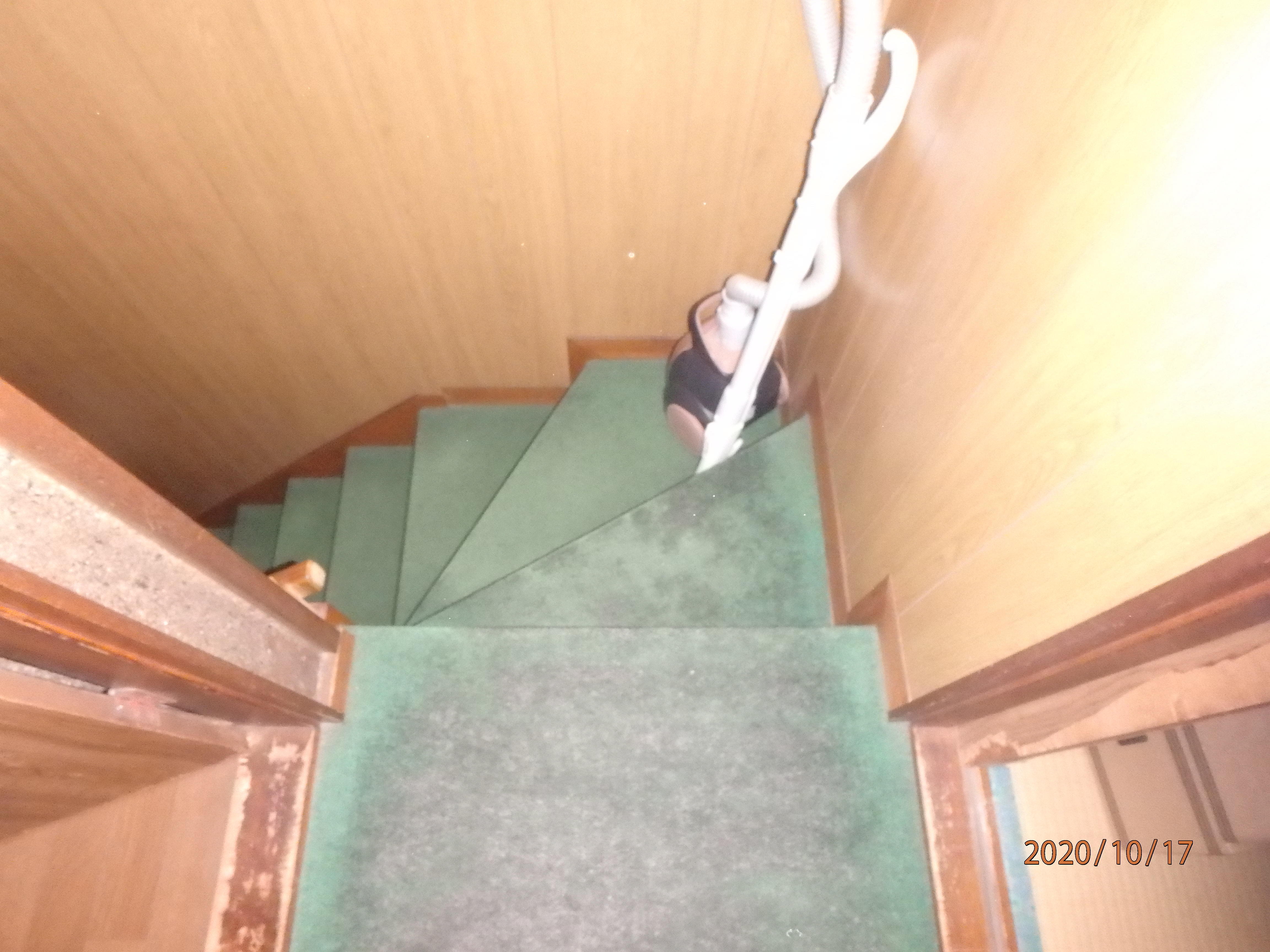 インプラスの他にも気になっているところがあり、和室の天井と壁をビニルクロス仕上げにしたり、階段のパンチカーペットを張り替えたり、襖の張り替えや建具の作り替えをやらせていただきました。お客様と相談して、天井と壁を明るい色のビニルクロスで仕上げさせていただきました。