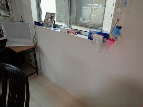 足立区柳原のOB様の現場でリビングのリフォームをさせていただきました。壁掛けTVを取り付ける為の下地補強工事と壁面にカウンターを取り付けさせていただきました。