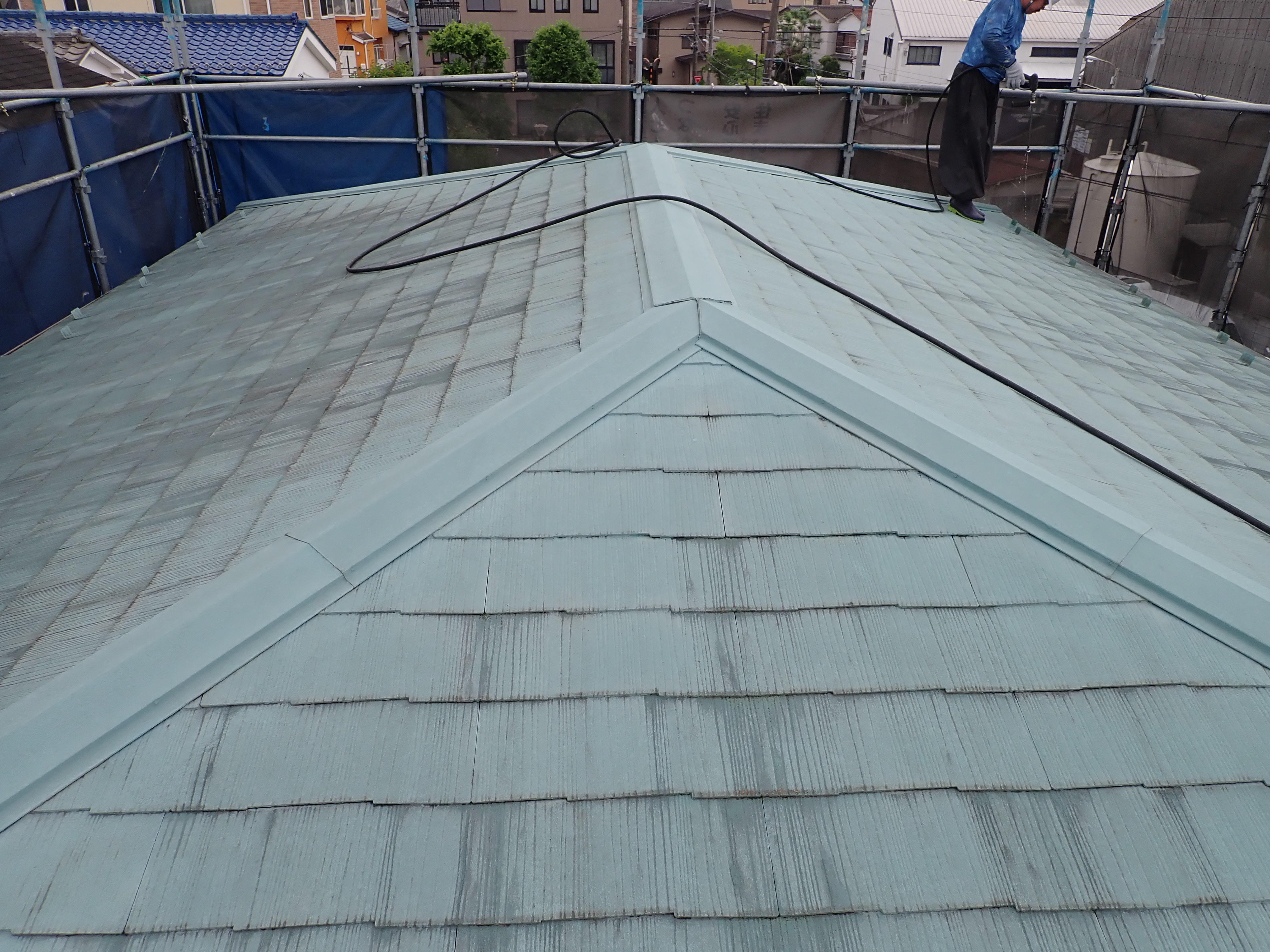 足立区江北のOB様の現場で屋根外壁塗り替え工事をさせていただきました。