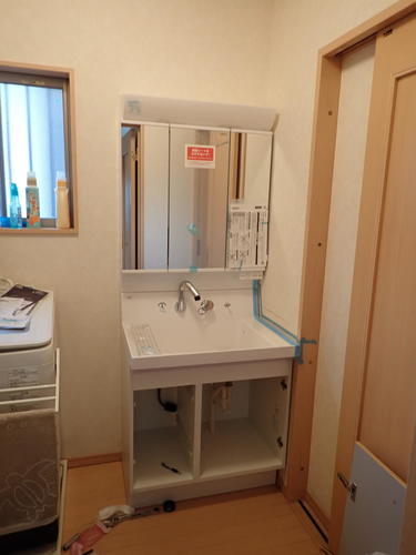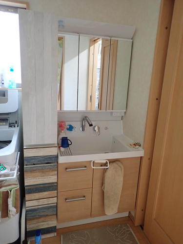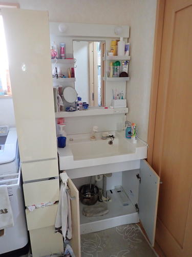 足立区舎人にお住まいのOB様の娘様のご自宅で洗面化粧台交換をさせていただきました。洗面化粧台のシャワーの部分から水漏れしてしまっていたようです。現場調査をさせていただき、お話を聞かせていただきながらプランを決めさせていただきました。