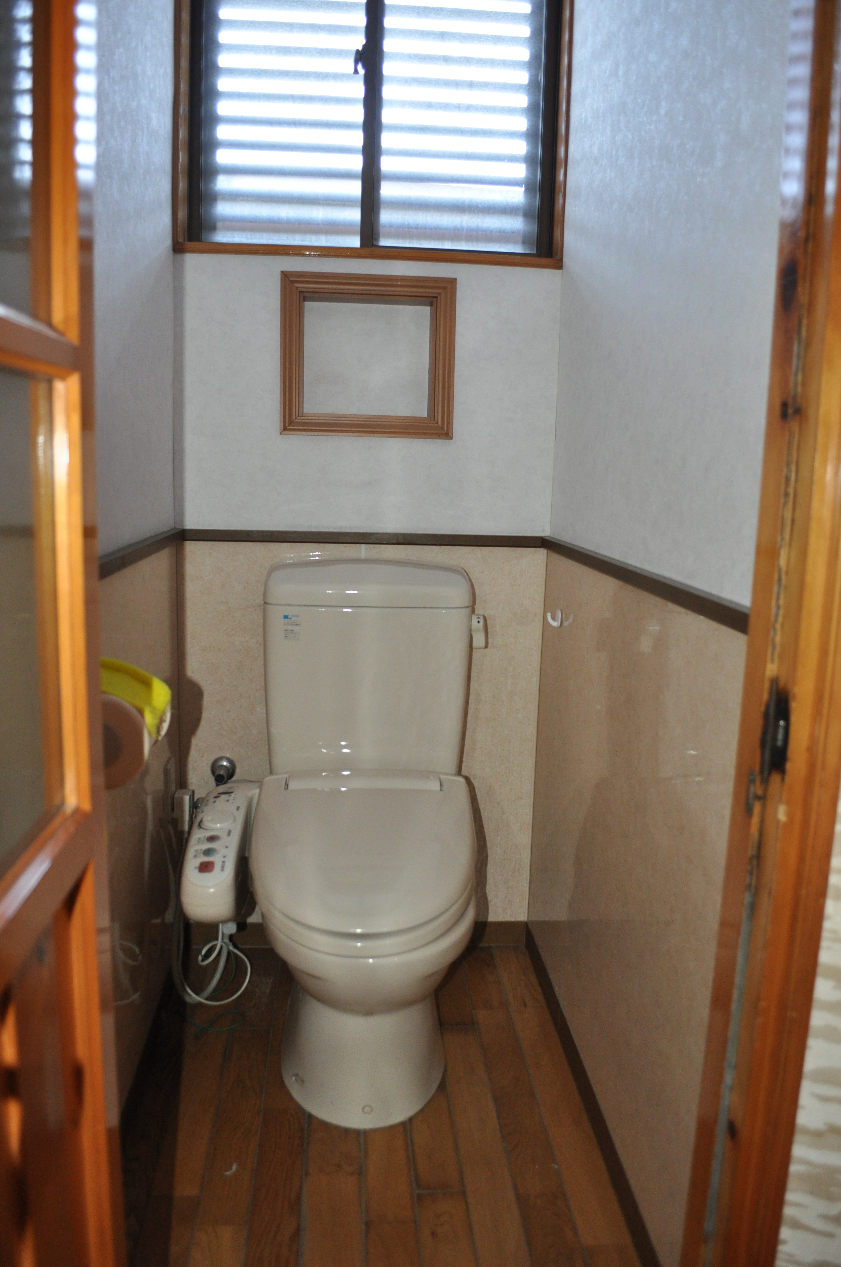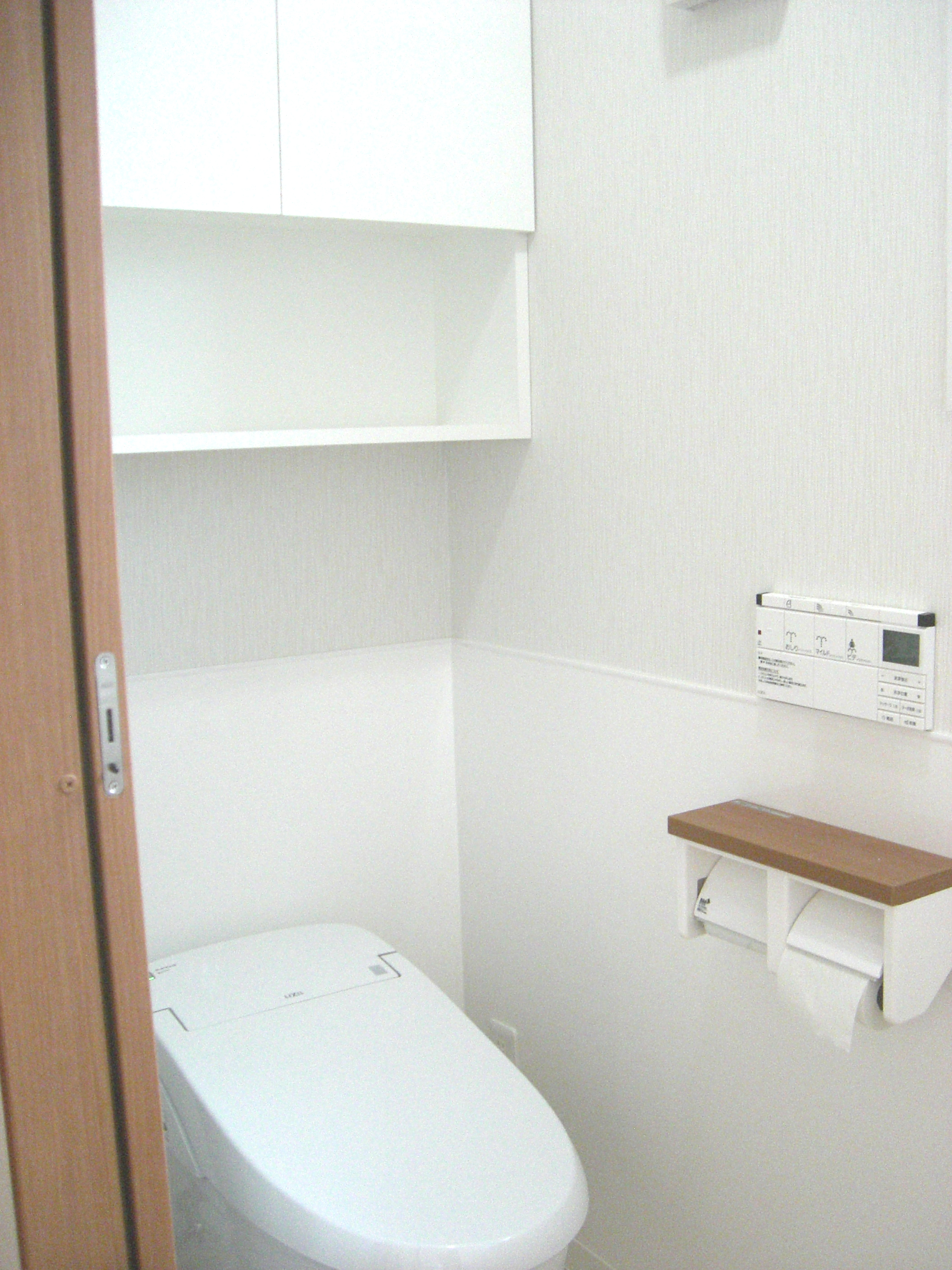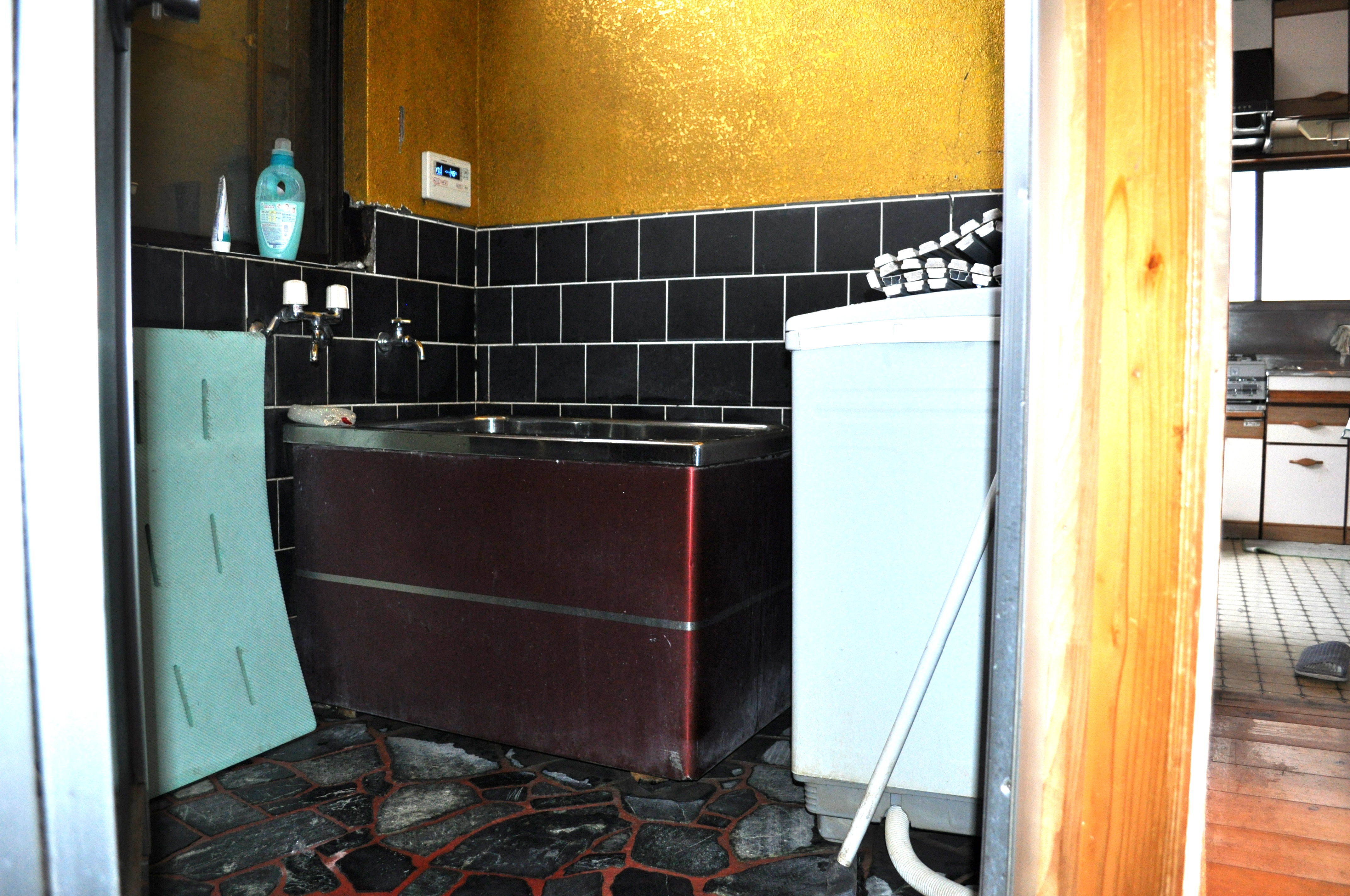 今までなかった脱衣所を造り、キッチンにあった洗面所を確保。洗濯機置き場も設けて水回りを快適にしました。タイル張りで寒かった浴室には、換気暖房機と床暖を設置して暖かく生まれ変わりました。雨の日はここに洗濯物を干すこともできます。キッチンとトイレにも床暖を設置したので、冬の寒さの心配はなくなりました。