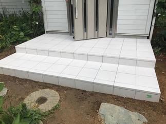 玄関扉を新しいものに取り換えて、玄関ポーチのタイルを張り替えました。
