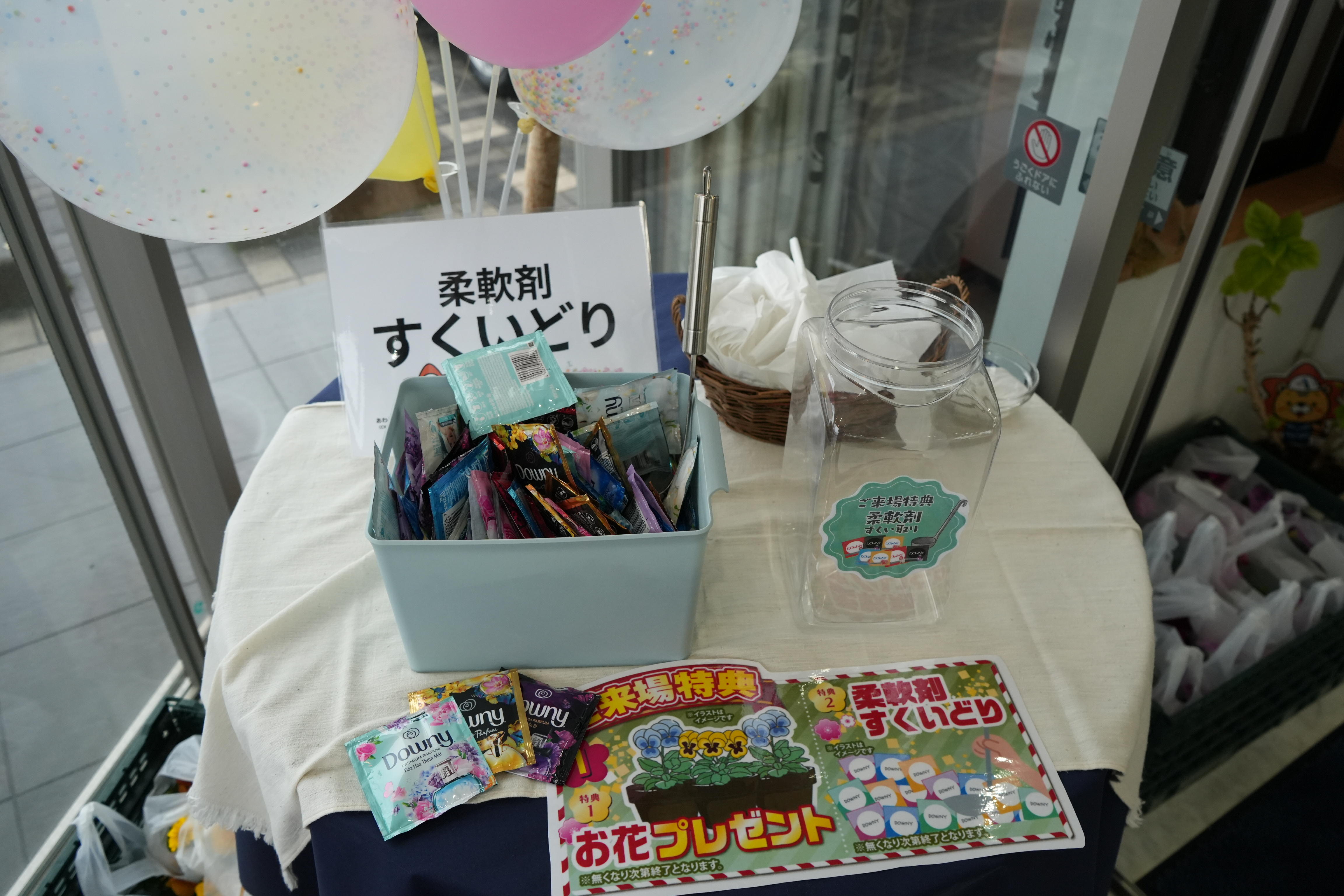人気の柔軟剤"Downy"のすくい取りや、お花の苗も色々な種類や色があって選んで頂きました。