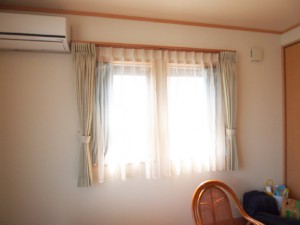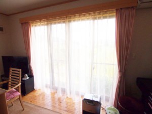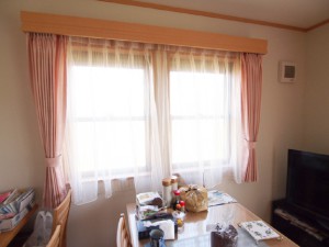 新築をしたお宅に鮮やかなピンクのカーテンをお取付けさせていただきました。カーテンがつくとまたお部屋の雰囲気もガラッと変わって素敵に仕上がりました。