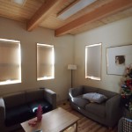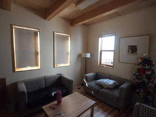 ロールスクリーンは、すっきりと取付けたいというご希望でしたので窓枠の内側にお取付。小窓は、すっきり見せるために、開閉はスプリング式(グリップ付)です。