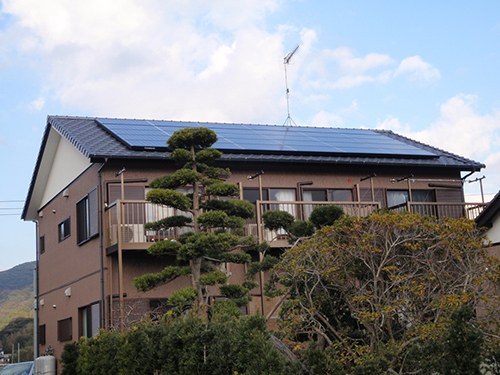 複数の建物を所有されているので設置対象の検討に苦労しましたが、持ちアパートの屋根に多くの量を設置し、併設されている自宅へと連系させて頂きました。