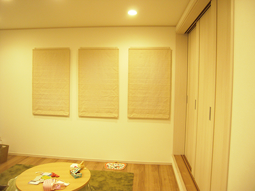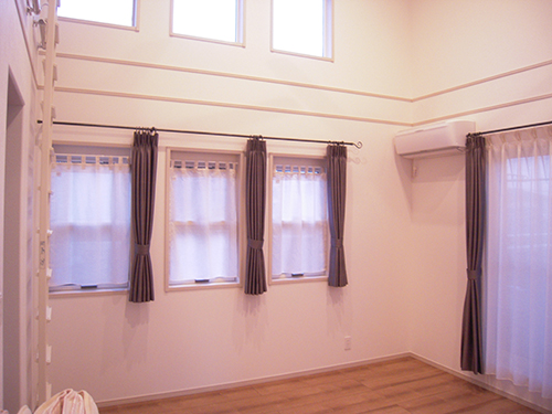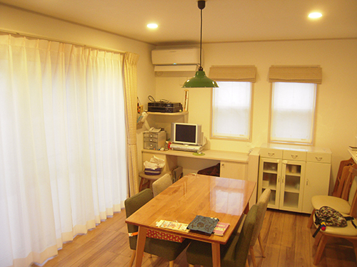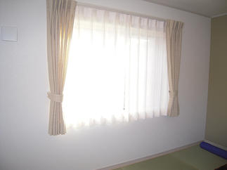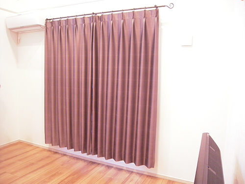 新築のお宅でカーテンは家具の雰囲気にあったもの、 お気に入りの生地でこだわって作りたいというのがT様のご要望でした。 お気に入りの生地とカーテンレールで仕上げることができて、大変気にいって頂けました。