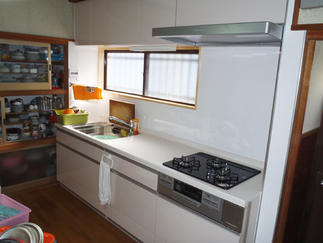 キッチン交換・お風呂の改修工事をさせていただきました。 キッチンはLIXILさんのアミィをお選びいただき、キッチンパネル共に白をお選びいただき清潔感のあるキッチンへと変わり、 お客様には大変喜んでいただきました。 大きな収納にたくさん物をしまうことができ、カウンターも広く使いやすそうです。