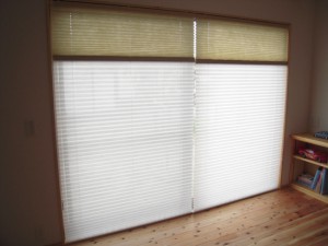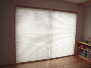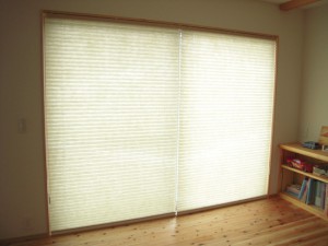 こちらが上部に厚手を下げている状態です。採光しながら、上からの視線や強い日差しをカットできるという使い方です。こちらとは逆で下部に厚手を持ってきた場合は、外からの視線をカットしながら採光できるという使い方が出来ます。すごくオシャレでスマートな感じに仕上がりました。
