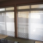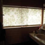 こちらは洗面所の窓です。西日が強くてこまっているけれど、遮光で暗くなるのは困るな・・・ということで、遠くからでも明るく爽やかな葉っぱ柄のグリーンの柄をお選びいただきました。