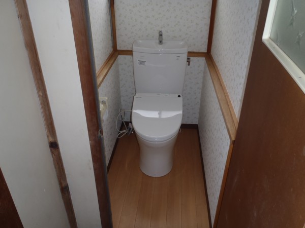 トイレは和式から洋式へ交換。節水型でeco小3.8Lの機能もあり、地球にもお財布にも優しい商品です。 タイルを撤去して、壁はクロスの張り替え、床はクッションフロアに交換しました。