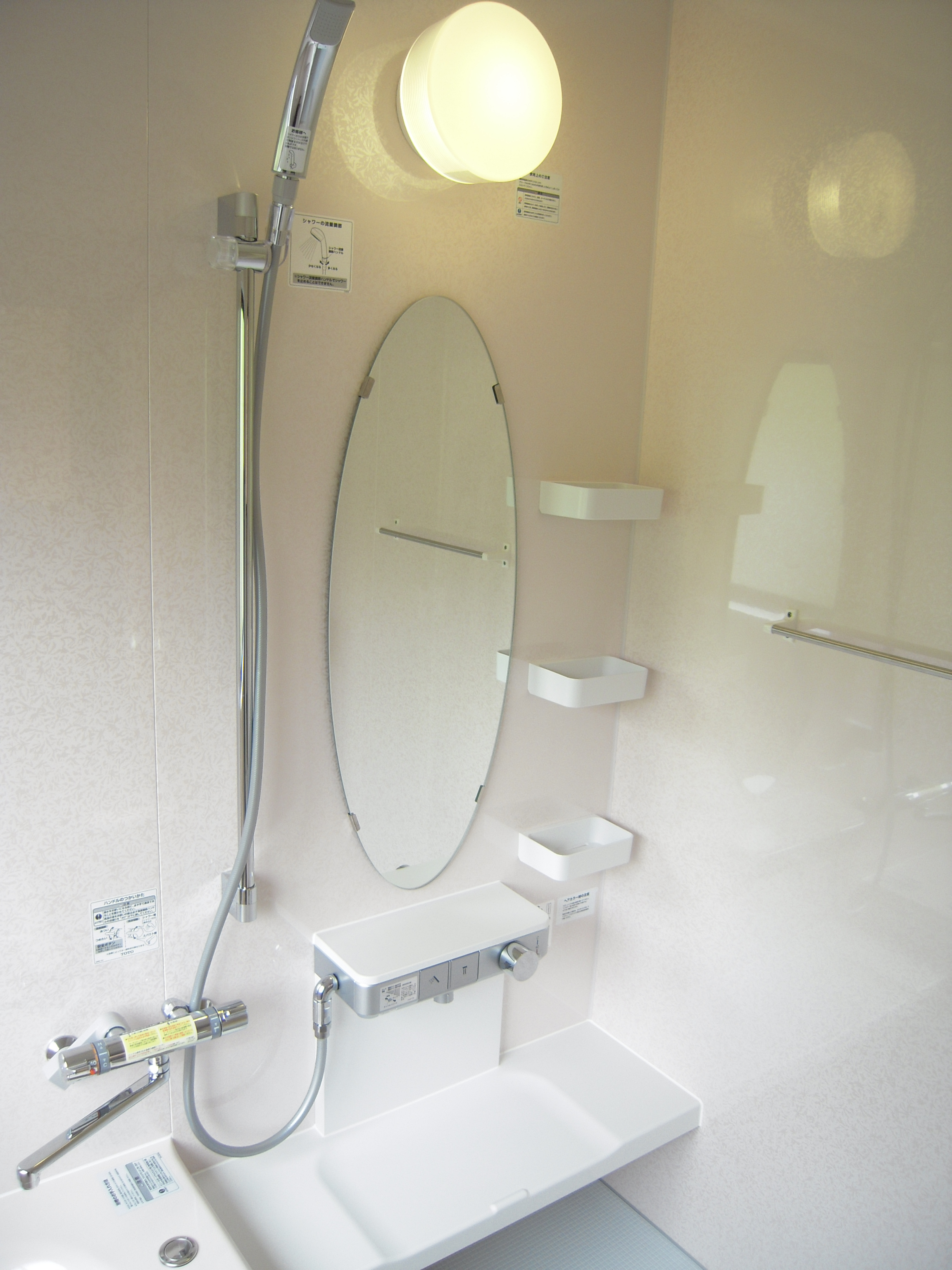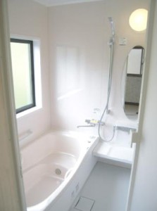 システムバスルームをご提案。 浴槽の位置を変更。 より有効的にお風呂のスペースが利用できるようにご提案。