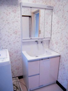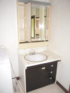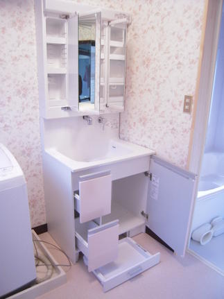 古くなった洗面化粧台を新しく交換したいというご相談をいただきました。エコ仕様の水洗と片引出しの収納、体重計収納もついている機能性に優れた商品にお取替えさせて頂き、お客様には大変喜んで頂きました。