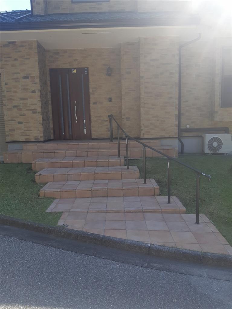 以前は玄関から玄関先のポストまで歩くのが大変で、手すりがあればなぁと思っていました。 デザイン性も高く、医療的なイメージはなく、思い切って設置して本当によかったと思っています。 これで安心してスロープを上り降り出来るようになりました。