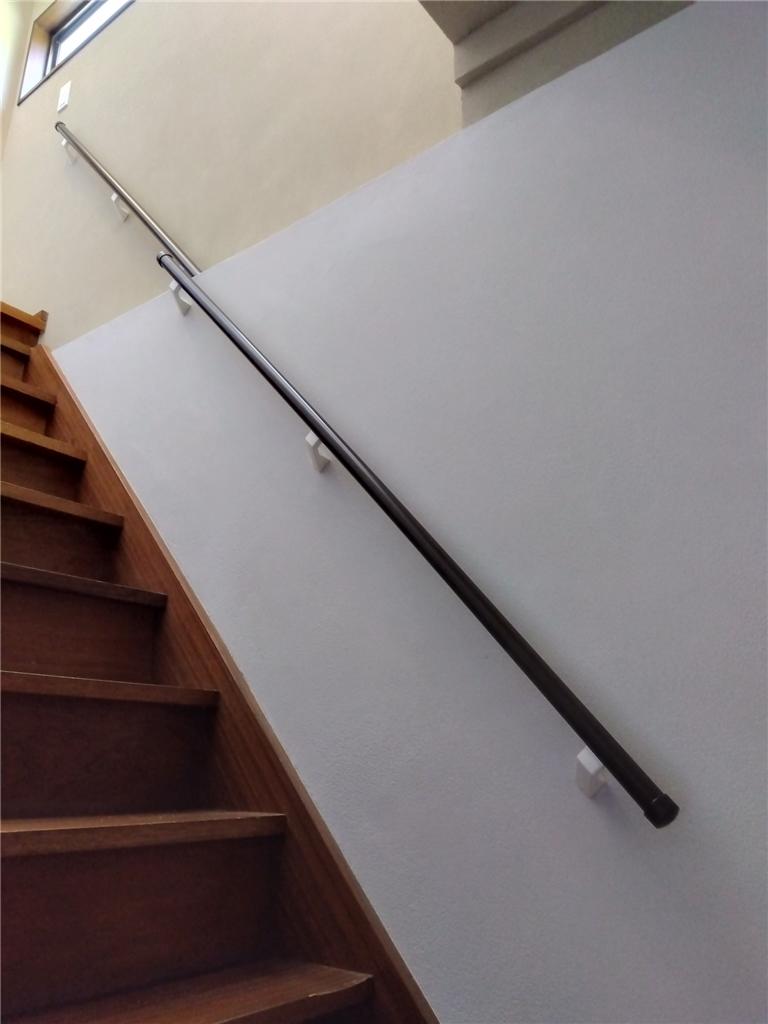 工期も1日、急な階段も手すりを設置したことで、安心して昇り降りしていただけるようになりました。 階段のカラーに合わせて、手すりの色もお選びいただき、見た目もかっこよく、空間になじむ仕上がりとなりました。 別途ご提案させていただいた、部屋の間仕切り用のアコーディオンカーテンもステキに仕上がり、貸別荘へ滞在されるお客様も、快適にお過ごしいただけるのではないかと思います。