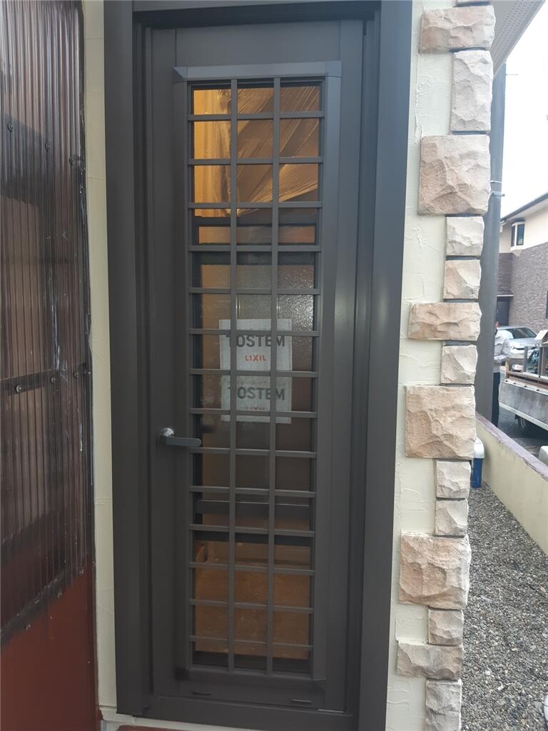 以前使用されていた勝手口ドアは、窓がなくお部屋が暗い印象でした。 玄関としても利用されていたとのことでしたので、換気や光が入るドアをご提案させていただきました。