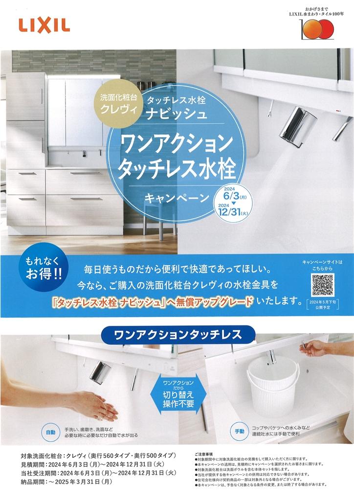 通常の水栓からタッチレス水栓に無償でグレードアップできるお得な機会です。