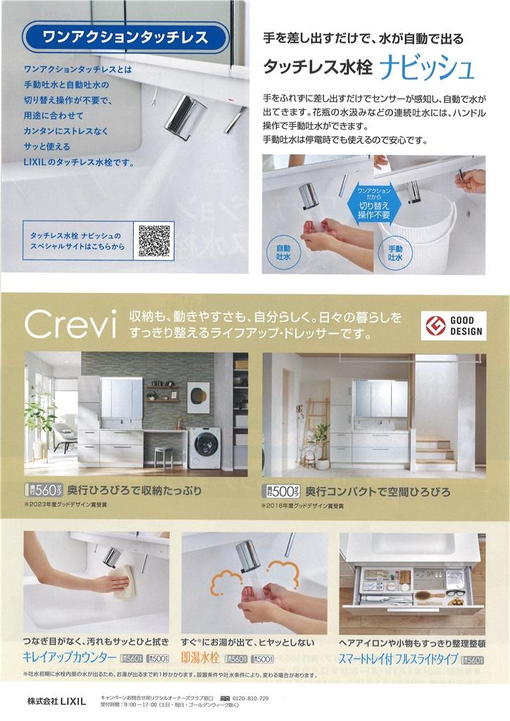リクシルの洗面化粧台『クレヴィ』奥行560mmタイプまたは500mmタイプが、
