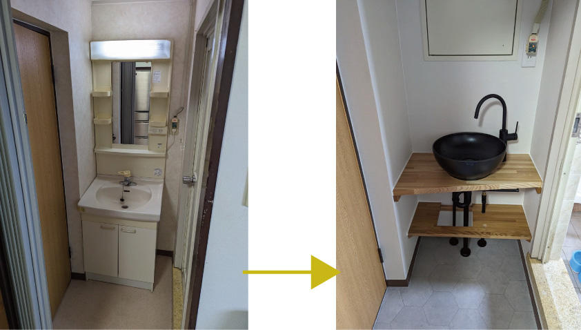また、既成の洗面台にプラスして上部の収納を増やしたり