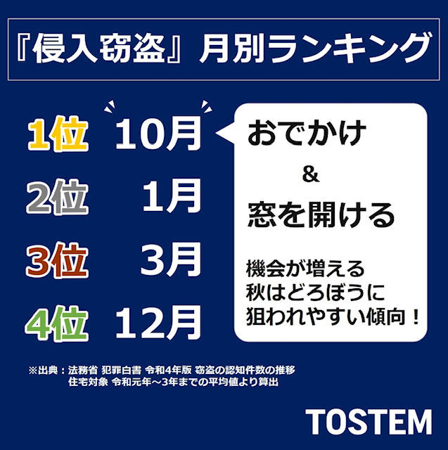 10月は窓や玄関を開けることが増え、うっかり閉め忘れてしまったり、