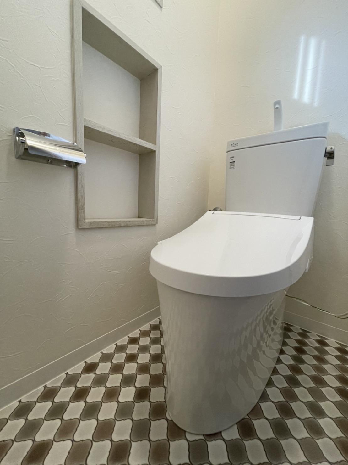 築30年以上の木造住宅。 トイレ床の不具合から、トイレリフォームのお問合せをいただきました。 現地調査をさせていただいた結果、床の補修は必要なく、壁紙の張替え、トイレの交換だけですみました。