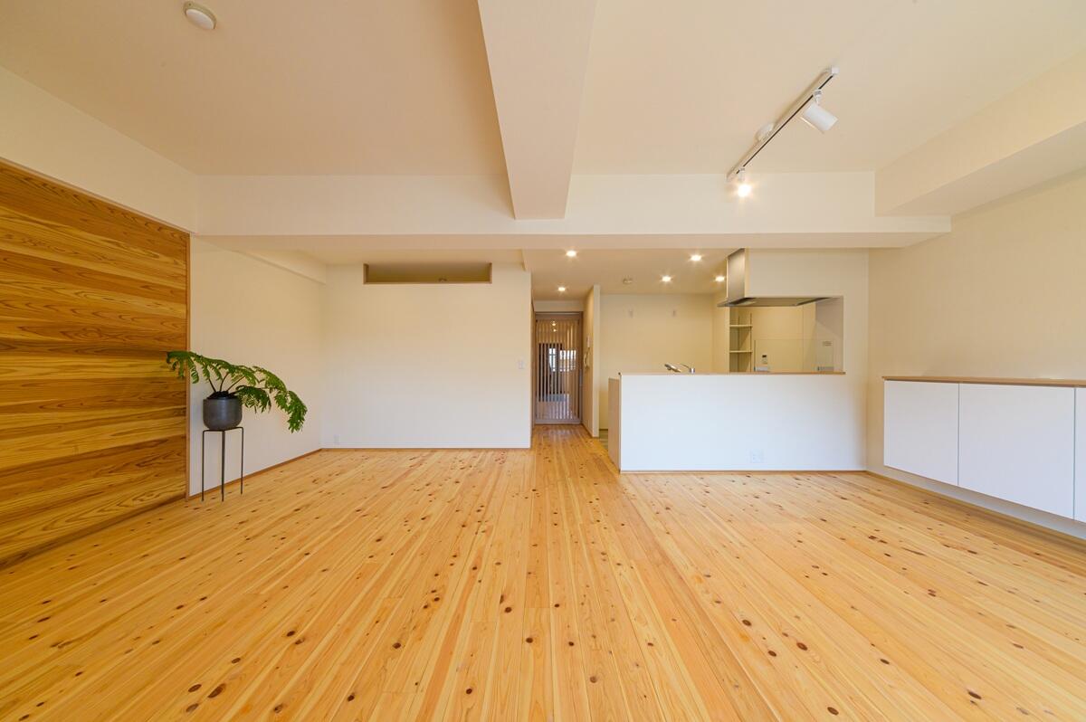 お子様が巣立ち夫婦二人の生活に。設備を新しくすることと、将来を見据えたバリアフリー設計を考えリフォームのご相談をいただきました。25畳の大空間リビング、在宅ワークをされるご主人のための仕事兼趣味部屋、寝室から廊下へ抜けるウォークスルークローゼットなど、お二人がのびのびと快適に暮らせる空間設計になりました。内窓「インプラス」も設置し、冷暖房効率を上げて光熱費を抑えることもできます。