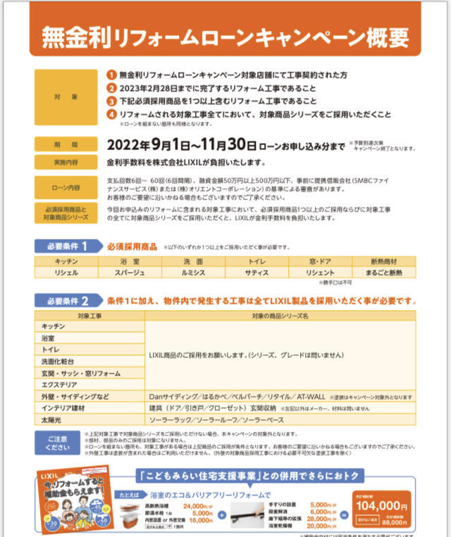無金利ローンキャンペーン LIXILリフォームショップ限定!!