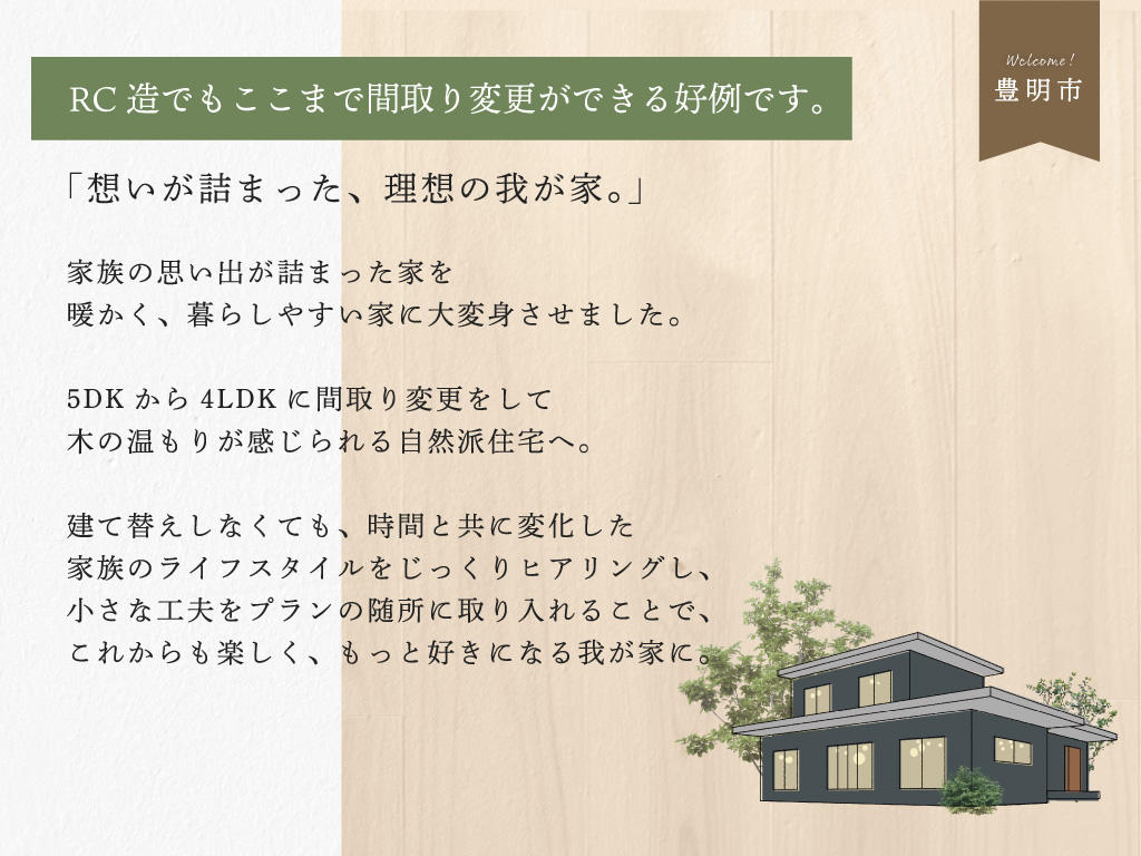 構造の制限が多いRC造の住まいをリノベーション。