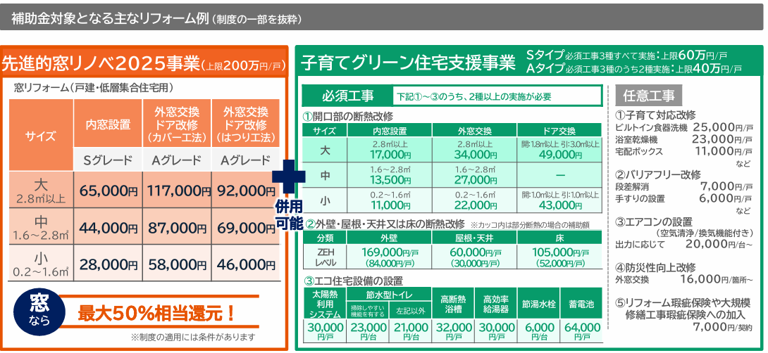 先進的窓リノベ2025事業&子育てグリーン住宅支援事業