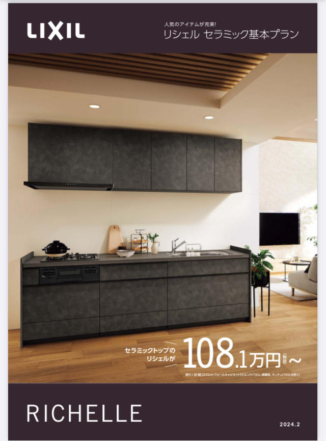 プロがすすめるシステムキッチンリシェル 『リシェルセラミック基本プラン』108万~が2024年春発売!! せっかくリフォームするなら使いやすいキッチンを是非ご検討ください!!店長の矢野(主婦)が自信をもっておすすめいたします。