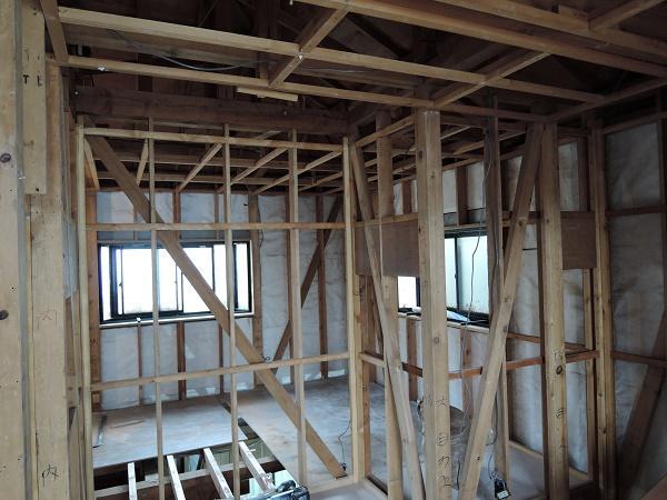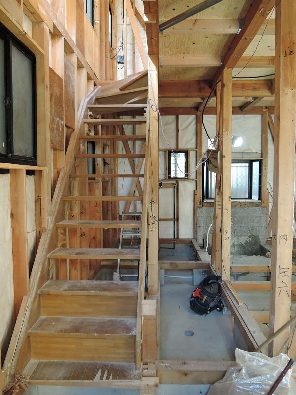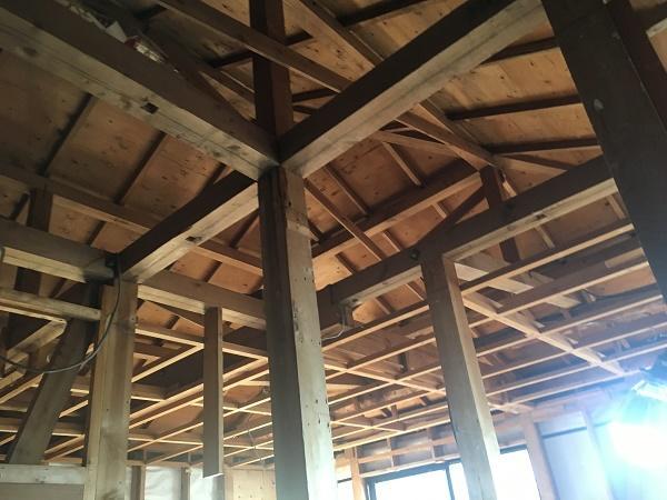 現在は、古くなって耐久性に難がある箇所や壁を全部剥がした状態です。