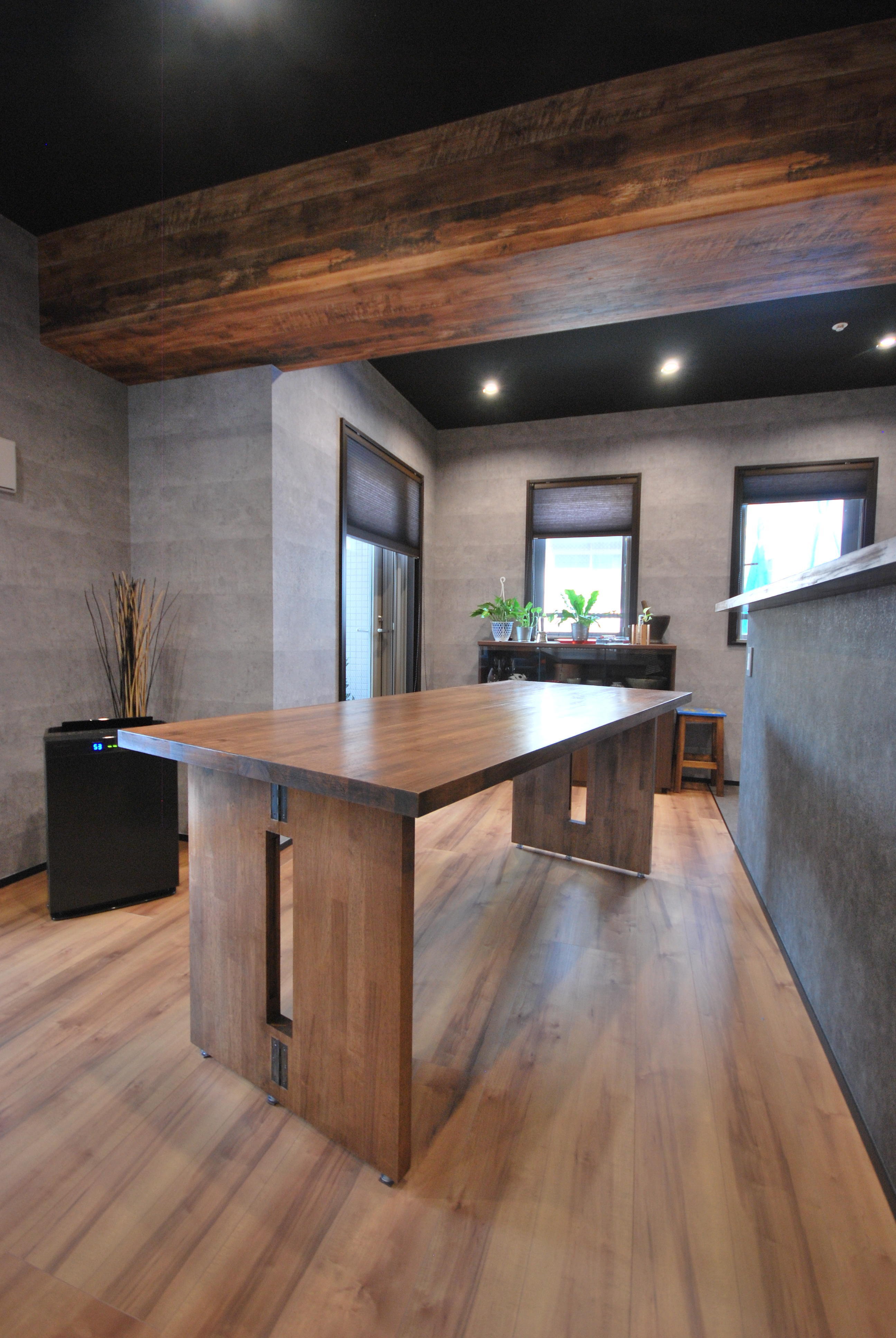普段はカウンターとして使い、お客様がいらしたときには広げて大きなテーブルとして使える折りたたみ式カウンターをお客様と一緒に設計しました。