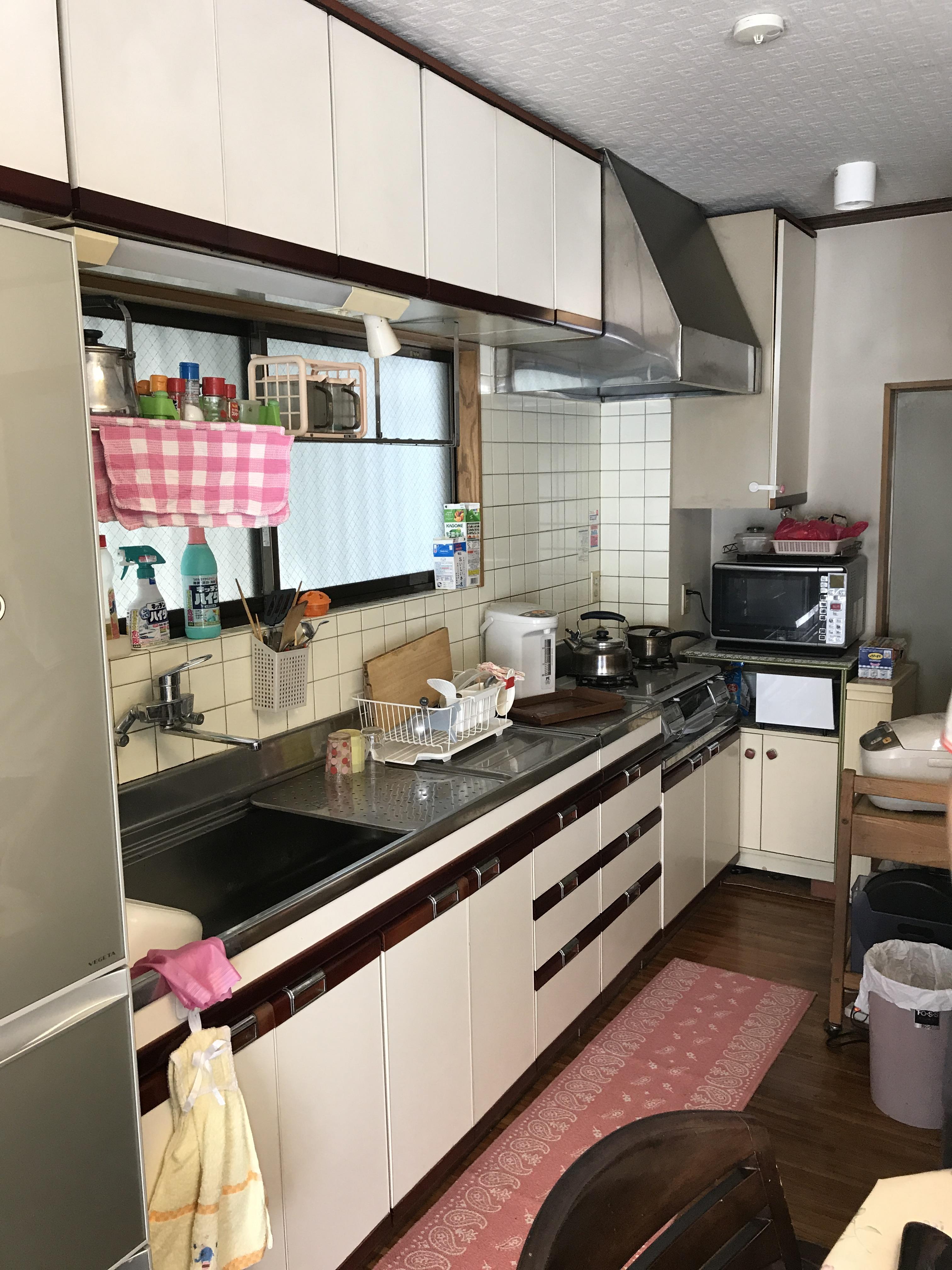 お子様が独立されて、お友達とのお茶会を楽しむ奥様。キッチンを見られるのがちょっと・・・と感じていらっしゃいました。収納力不足でワゴンや棚を追加して炊飯器や電子レンジなどを置いていらしたので、動線も良くありませんでした。すっきりとしながらも収納力があり、リビングからあまり見え過ぎないキッチンをご希望でしたので、スペースを最大限有効に使って収納を充実させ生活感が出ない工夫をしました。床・壁・天井には高性能の断熱材を入れ、温かい空間で奥様思いの優しいご主人との生活を楽しめるLDKにリフォームしました。 奥様には大満足というお言葉をいただき、とても嬉しかったです。