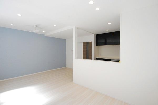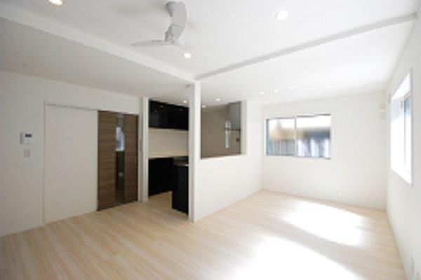 築40年の再建築不可物件を新築同様にしたいというお話しでした。1階で陽が入らず昼間でも薄暗いダイニングキッチンでしたが、どうしてもキッチンは1階が良いとのことでした。そのため窓の位置や場所を工夫することで陽が部屋の奥まで取り込めるようにしました。