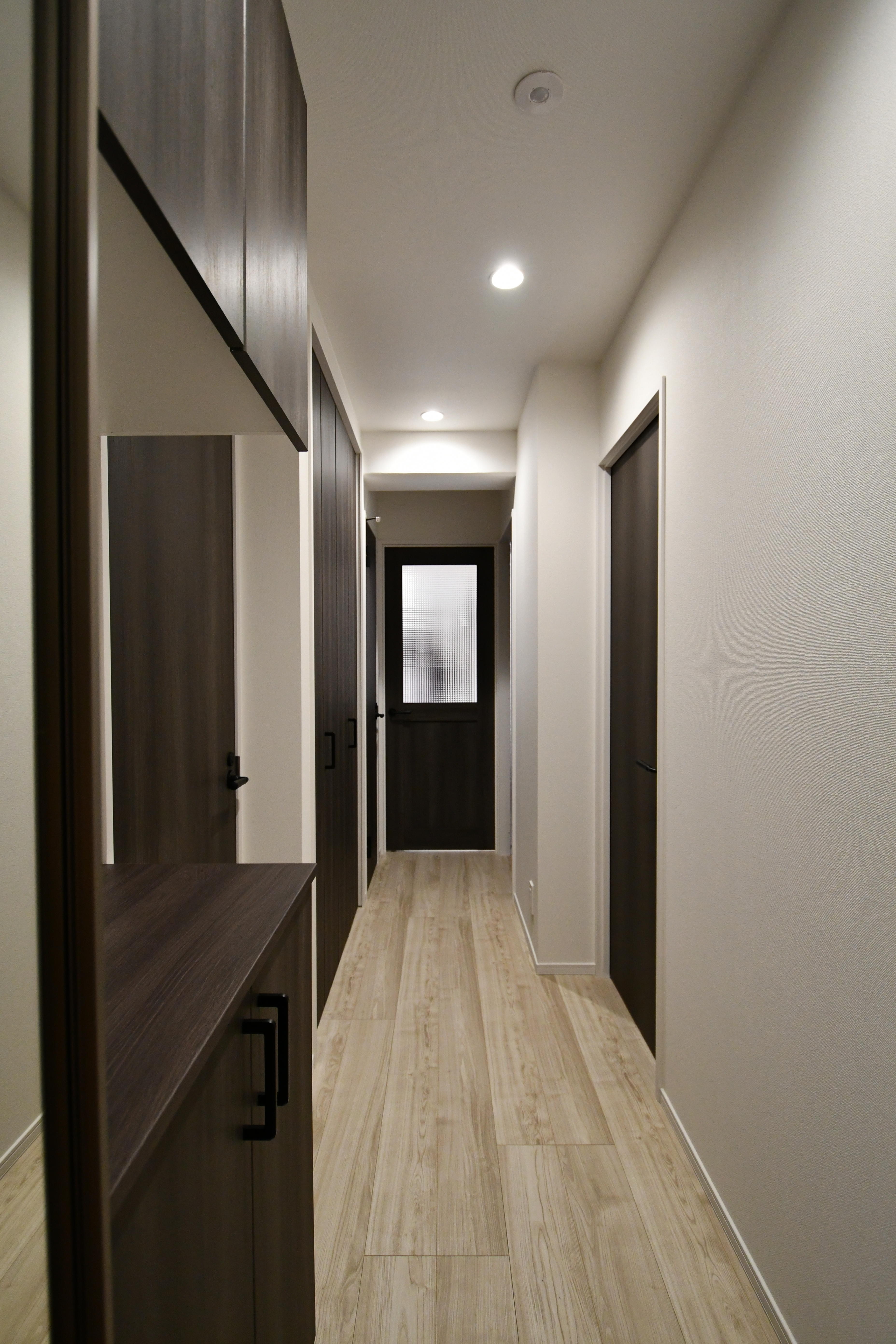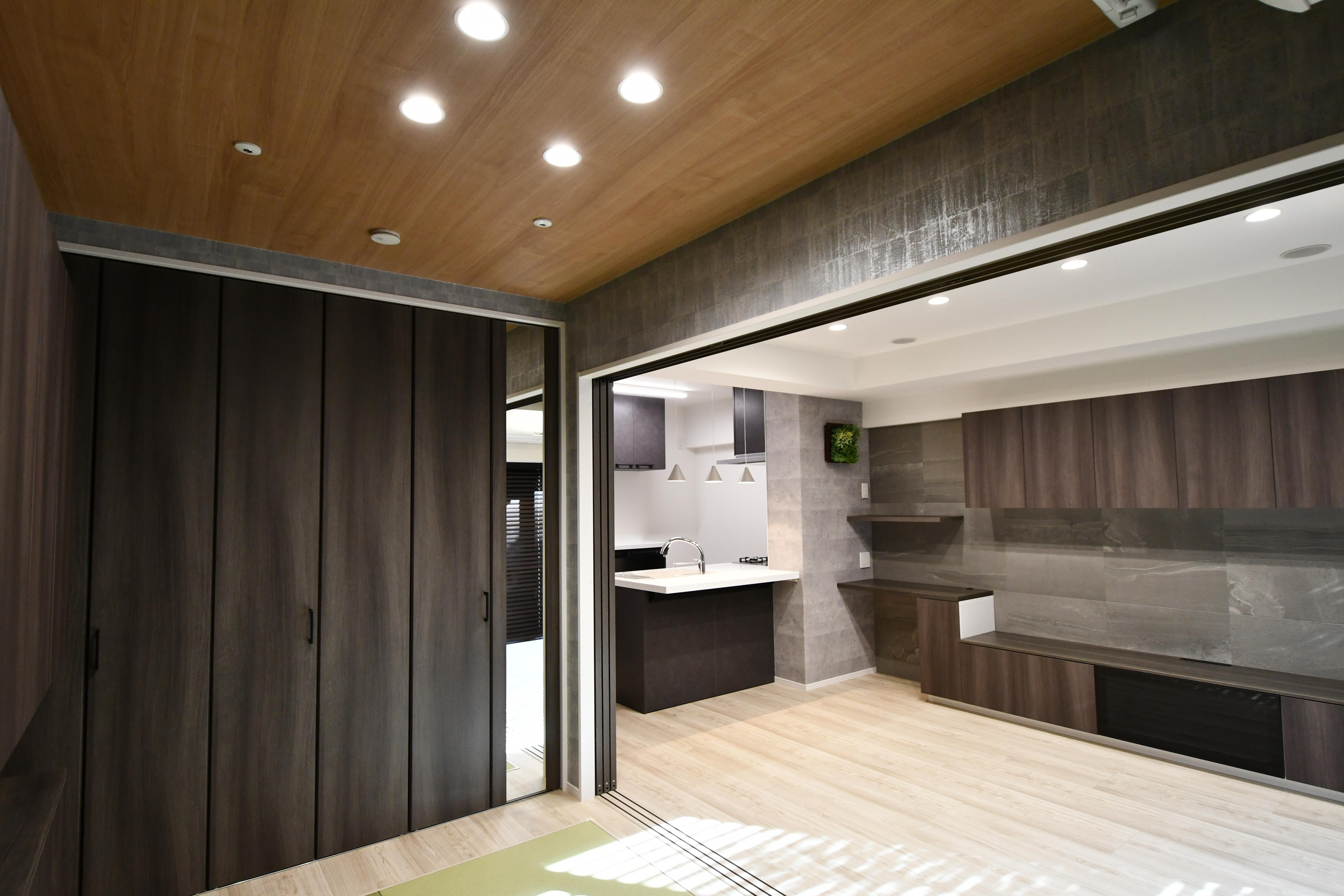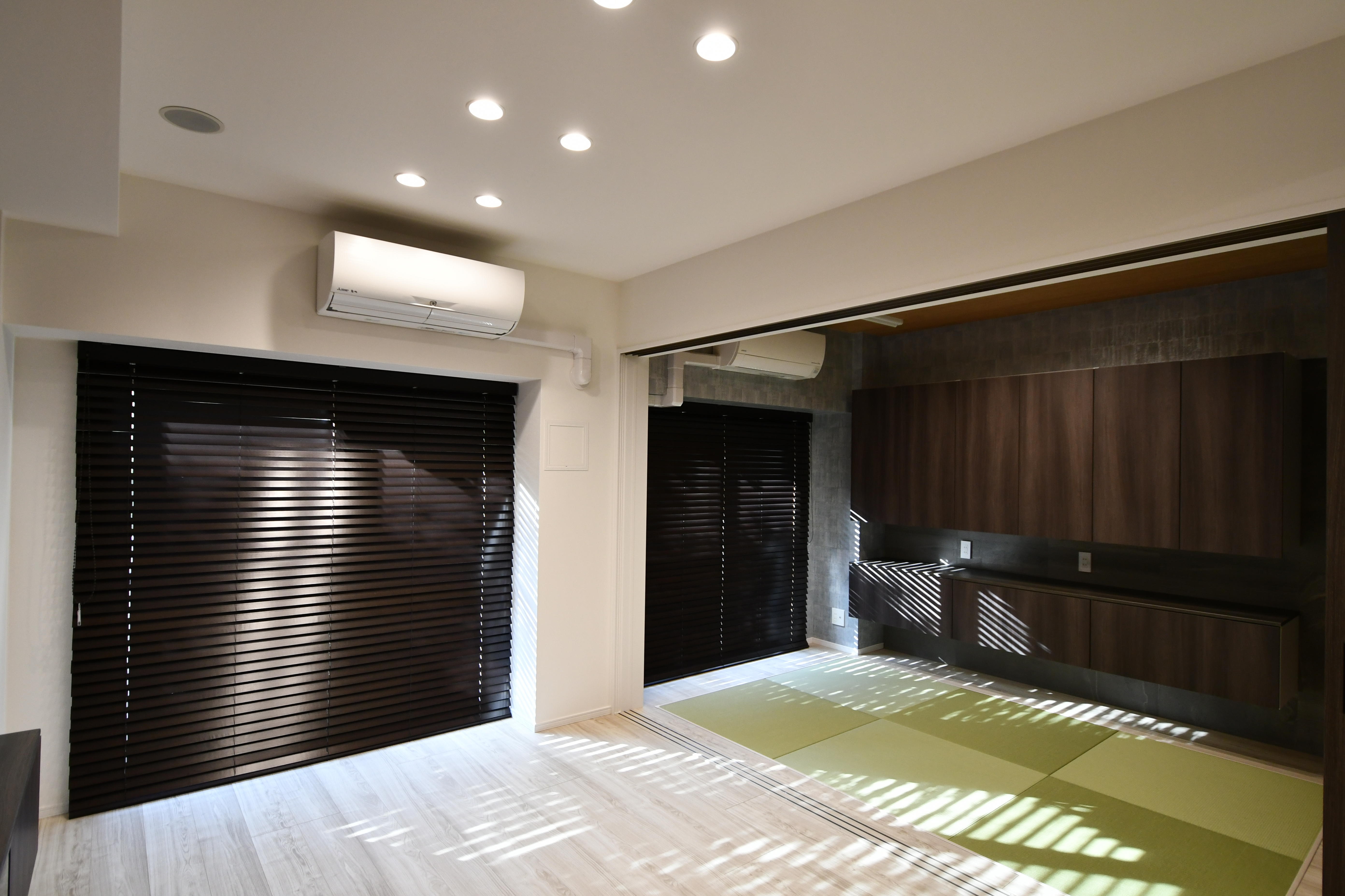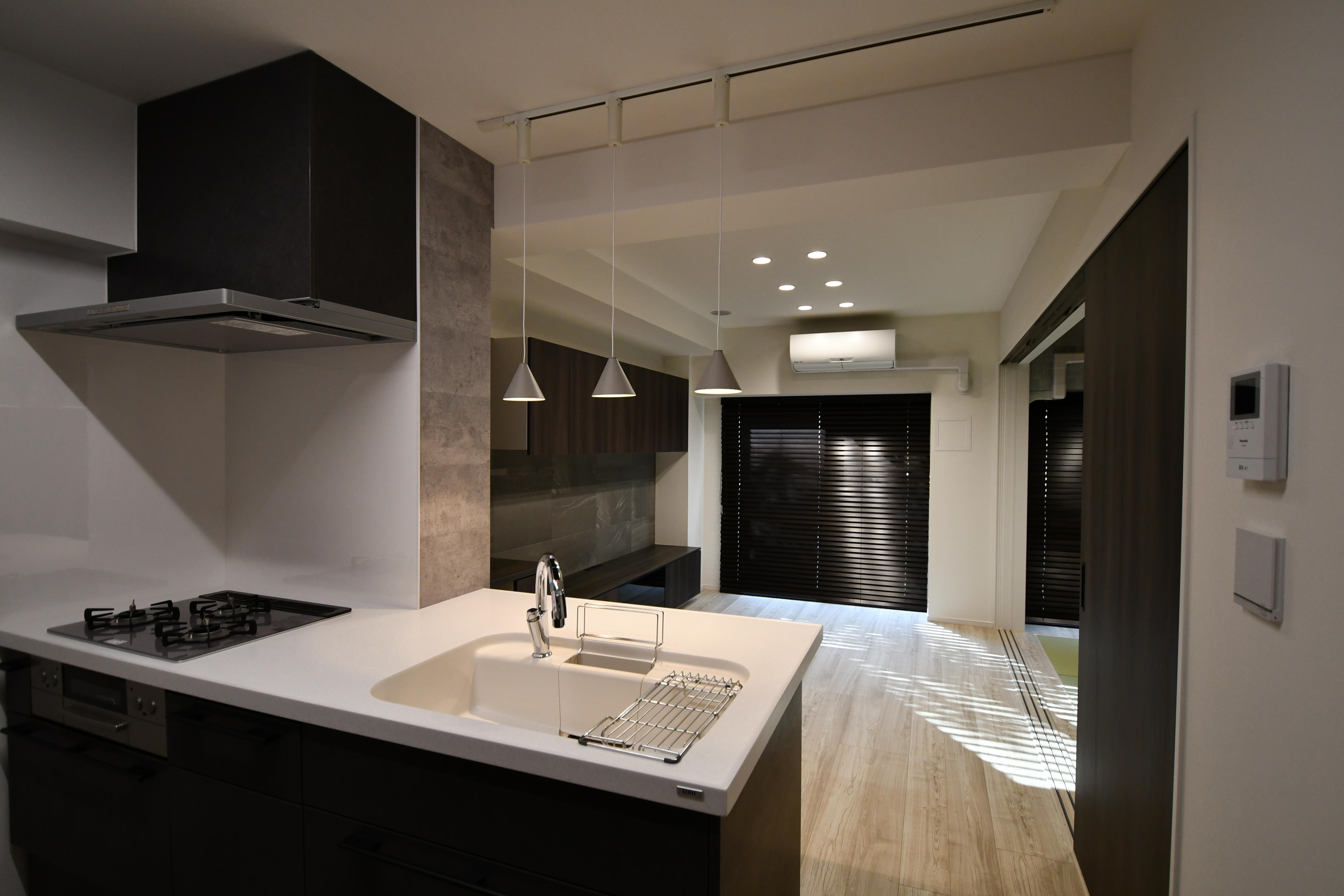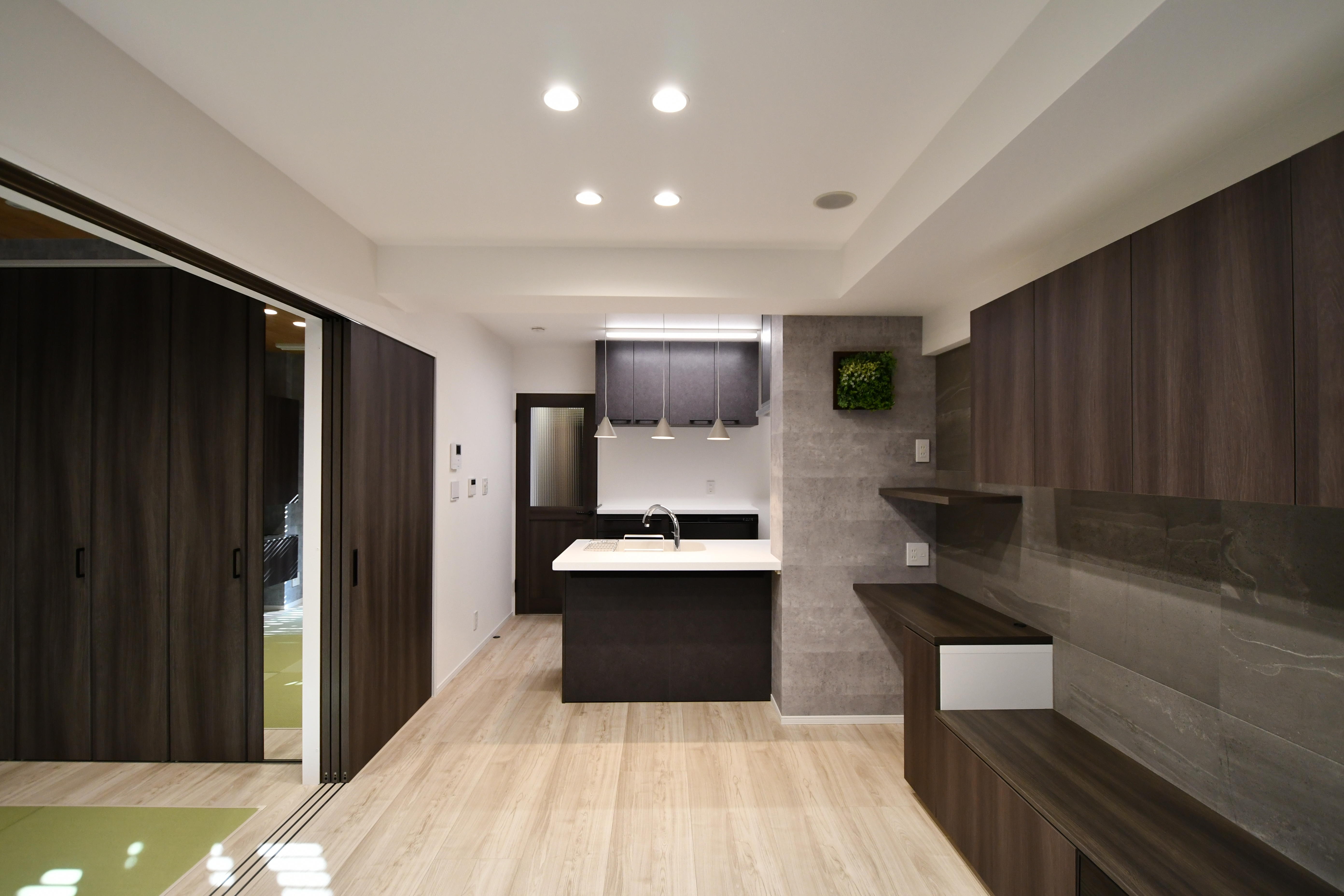 以前弊社でリノベーションをしていただいた方が同じマンションにお住まいでお付き合いがあり、お宅を訪問された際にM様もリノベーションに興味をお持ちいただいた事からご紹介につながりました。リノベーションのご相談をいただいて1か月後には着工というスピード感での工事となりました。壁で分かれていた2部屋をオープンにできる空間にし、ヴィータスを贅沢に使って収納力と意匠もUPしました。閉鎖的だったキッチンは、リビングを見渡せる開放的で使いやすいキッチンへと生まれ変わりました。全てのサッシにインプラスを施工し、結露もなくなり断熱効果も上がったので、快適な住空間となりました。