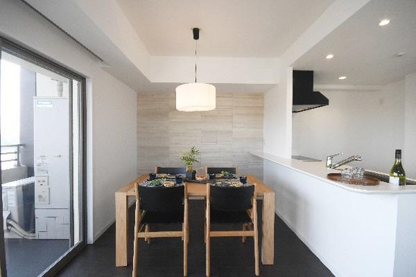 統一されたデザインで空間が繋がる ダイニング・リビング・和室。 和室を開ければキッズスペースや家事スペースに。 閉じれば個室になり、来客スペースやテレワークスペースに。 好きな場所に座り、自由な時間を過ごすことができる。 日常に変化を感じるゆとりある暮らしへ。
