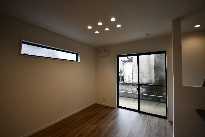 元々の1階は、ダイニングキッチンと和室に分かれていましたが、家族皆でくつろげる広いLDKとして使えるようにカタチを変え、構造的に取れない筋交いなどを剝き出しにすることで抜け感を出し、1階全体を一体空間に仕上げました。階段を挟んで、新たに設けたリビングは元々は和室でした。勾配がきつく危なかった階段は、距離と段数を増やすことにより、緩やかで安心して登れるようになりました。天井の照明はダウンライトをまとめて配置する集光により、シーリングライトのような凹凸感を出さず、すっきりとラインを合わせました。午前中の光を取り入れたい東側の窓は人通りの多い道路に面しており、プライバシー確保の観点から横長の高窓を取り入れました。目線よりも高い位置にあるため、人目を気にすることなく生活ができ、部屋の奥まで明るさを取り入れることができました。