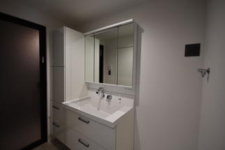 奥様が白・黒・グレーを基調にしたデザインがお好みだった為、LIXILデザインスタイル MUTED TONEを採用し、いつまでも飽きのこないシンプルかつ美しい空間に仕上げました。