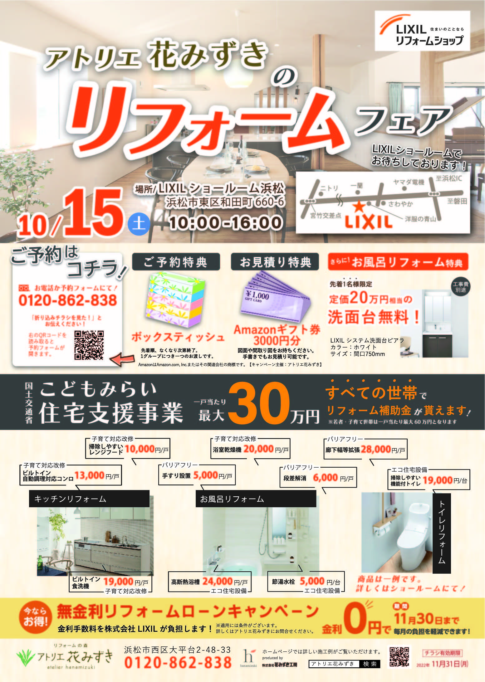 アトリエ花みずきの『リフォームフェア(相談会)』を開催いたします。