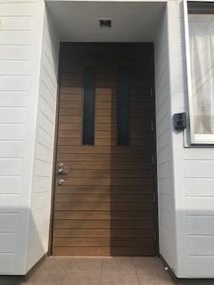 リクシル 玄関ドア リシェントM17型片袖:木製玄関の為、腐食等が気になり、雰囲気の近いデザインを選定にてリフォームしました。