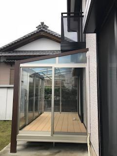洗濯物を干すスペースと、もう一つ部屋を増やすイメージでご相談がありました。 当初は別の機種でご検討されていましたが、ご相談内容ご希望からYKKサンフィールを提案。 お客様のご要望のイメージに近いとの事でリフォームに至りました。 屋根部に遮熱性の高いポリカ材と、内部に日除けシェードを設け夏場の暑さ対策もバッチリです。