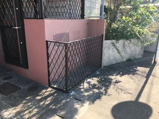 既存のゴミ置き場の形状を活かしてL型にアルミ格子を設置しました。 前回からの工事により、ゴミの分別がしやすく、すっきりとした印象になったと思います。