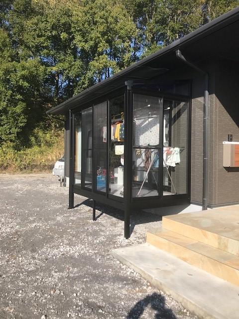 サニージュ囲いタイプは、雨や花粉など天気を気にせず干せ外出時も安心です♪ I様のように洗濯物干しスペースとして活用できる他、鉢植えや花の手入れガーデンスペースとして、 またペットのお気に入りスペースとしてと様々な用途で使えます♪その他、開放感を高めるハーフ囲いタイプもあります♪