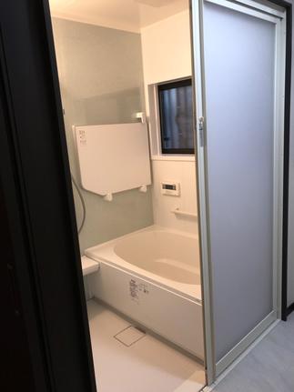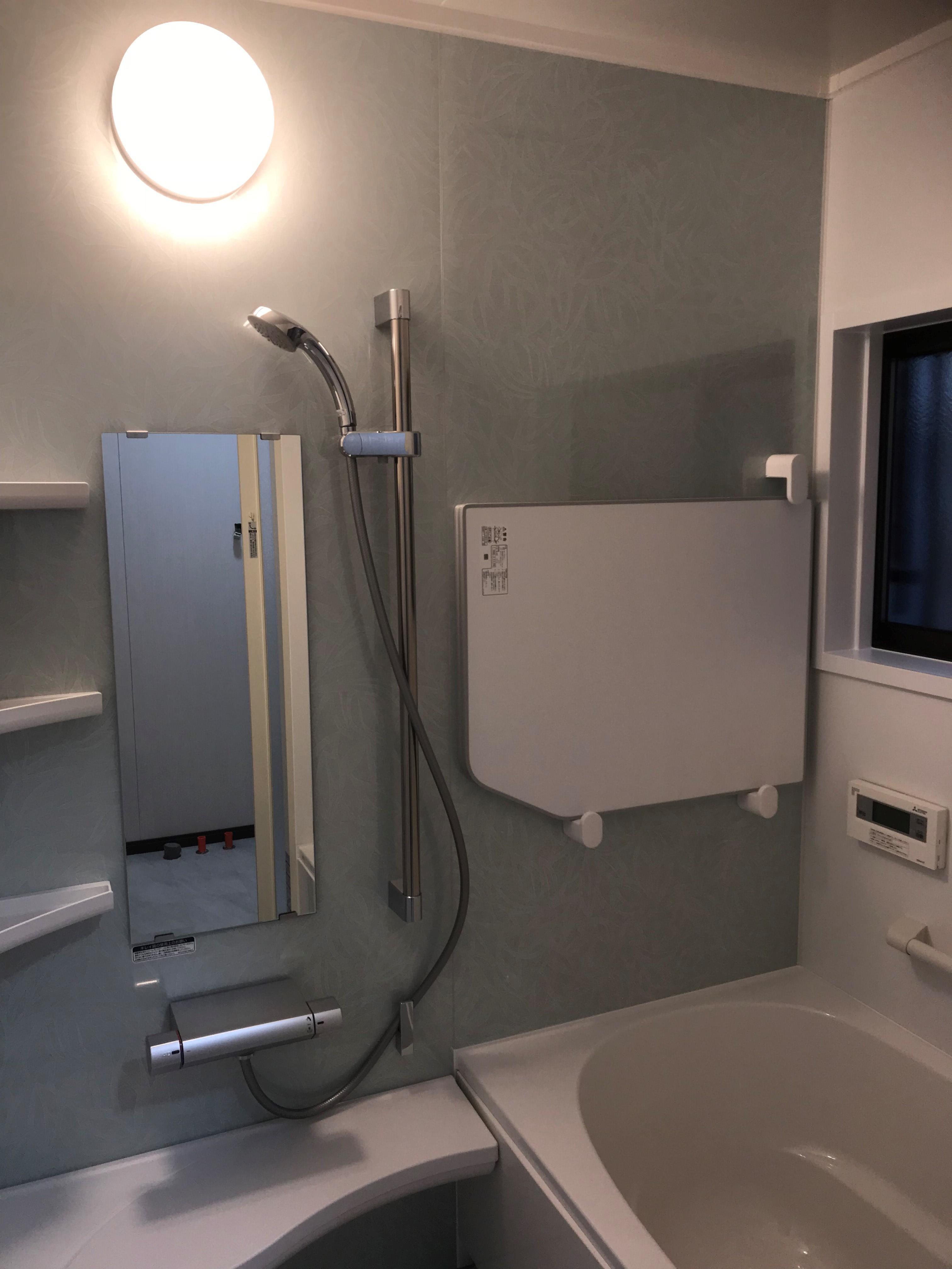 浴室の漏水老朽化と冬の寒さを考えリフォームに至りました。脱衣場の洗濯機と洗面台の新調と位置替え。脱衣入り口引戸をアウトセット仕様に。 サーモフロアはスポンジでお掃除らくらく♪寒い冬場でも冷っとしません♪またサーモバスでお湯が冷めにくい浴槽保温材と保温フタでダブル保温♪あったか快適な空間へ生まれ変わりました♪