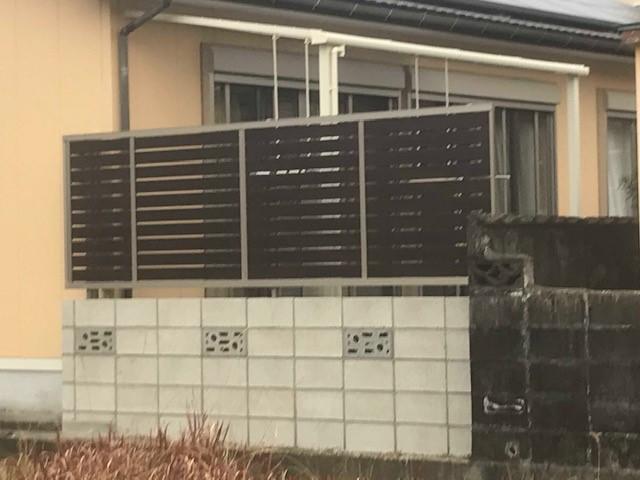 アルミフェンス:セレビューRP型T-12+ブロック工事5段積み, アルミテラス:スピーネテラスF型W3640×D1785ロング吊り下げ物干掛け
