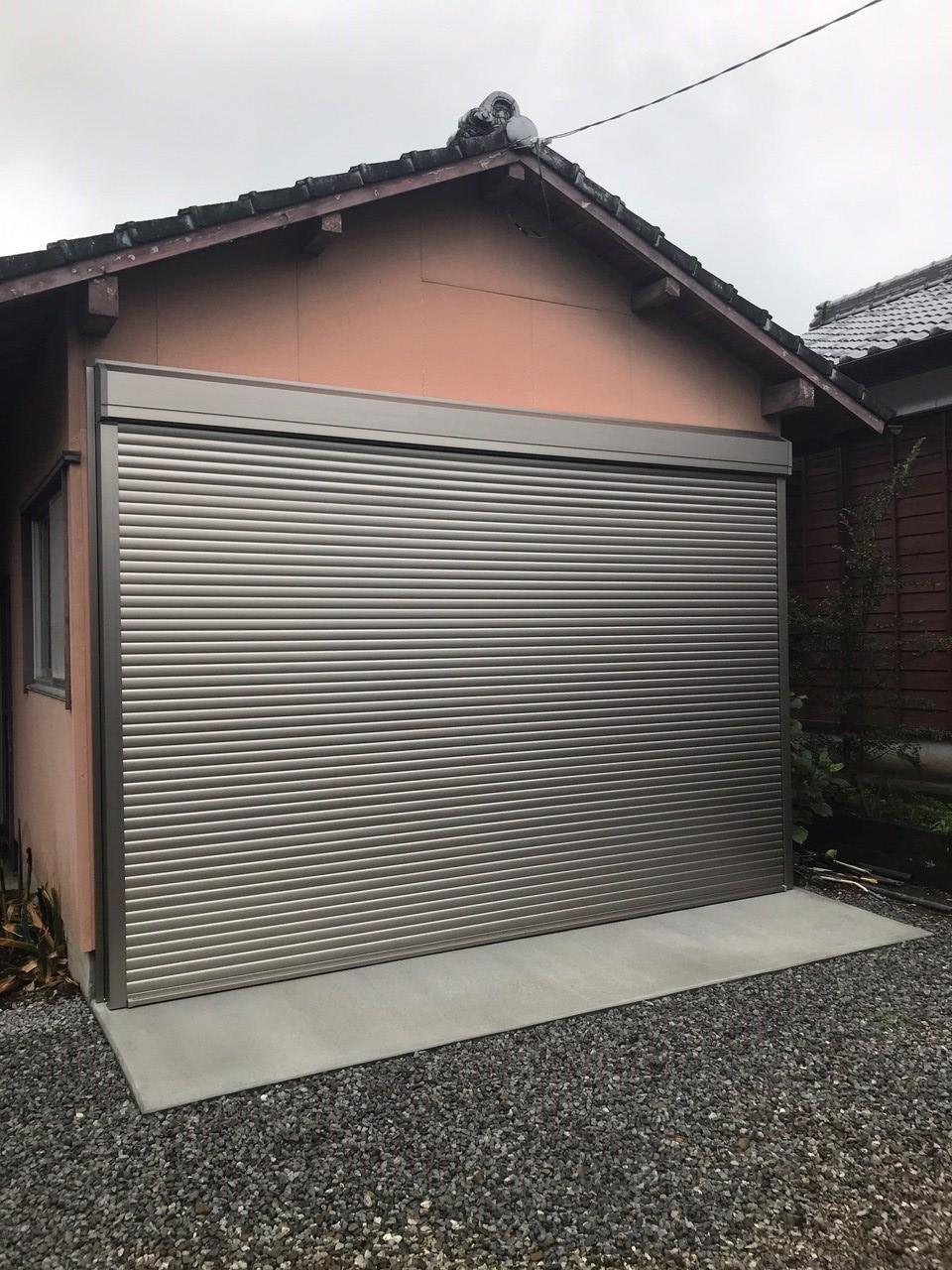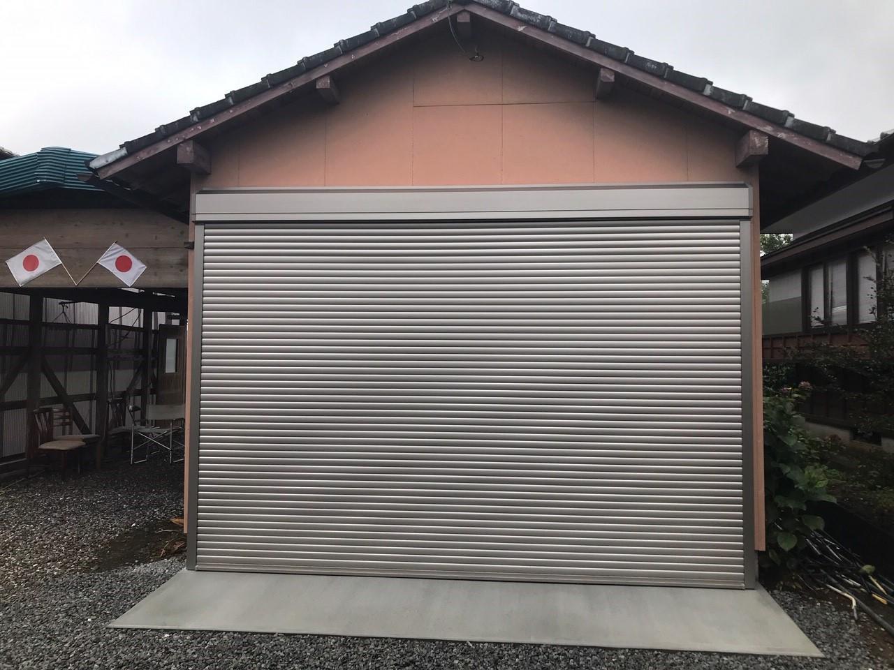 庭にある小屋を外壁のみを残して電動シャッターをつけ車庫として活用したいとのご相談がありリフォームに至りました。 開閉音も静かで、車の出入りがスムーズな開閉速度です(^^♪
