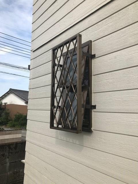 物が飛んできても大丈夫なように格子を付けたいとのご相談がありリフォームに至りました(^^♪本体はアルミ形材・取付金具はステンレス製なので耐久性に優れています♬また窓を美しく飾る面格子は、防犯性を高める効果もあります♬お住まいにあったデザインをお選び頂けます(^^♪