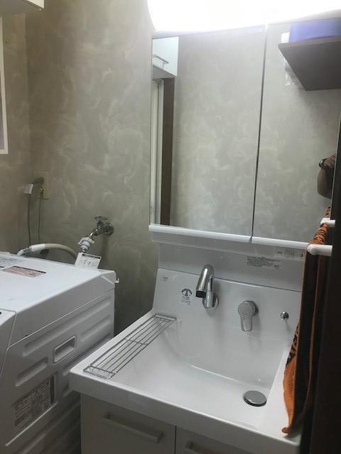 トイレ:プレアスHSリトイレ(棚付き2連巻紙器)、洗面化粧台:ピアラW600 2面鏡全収納、床CF工事