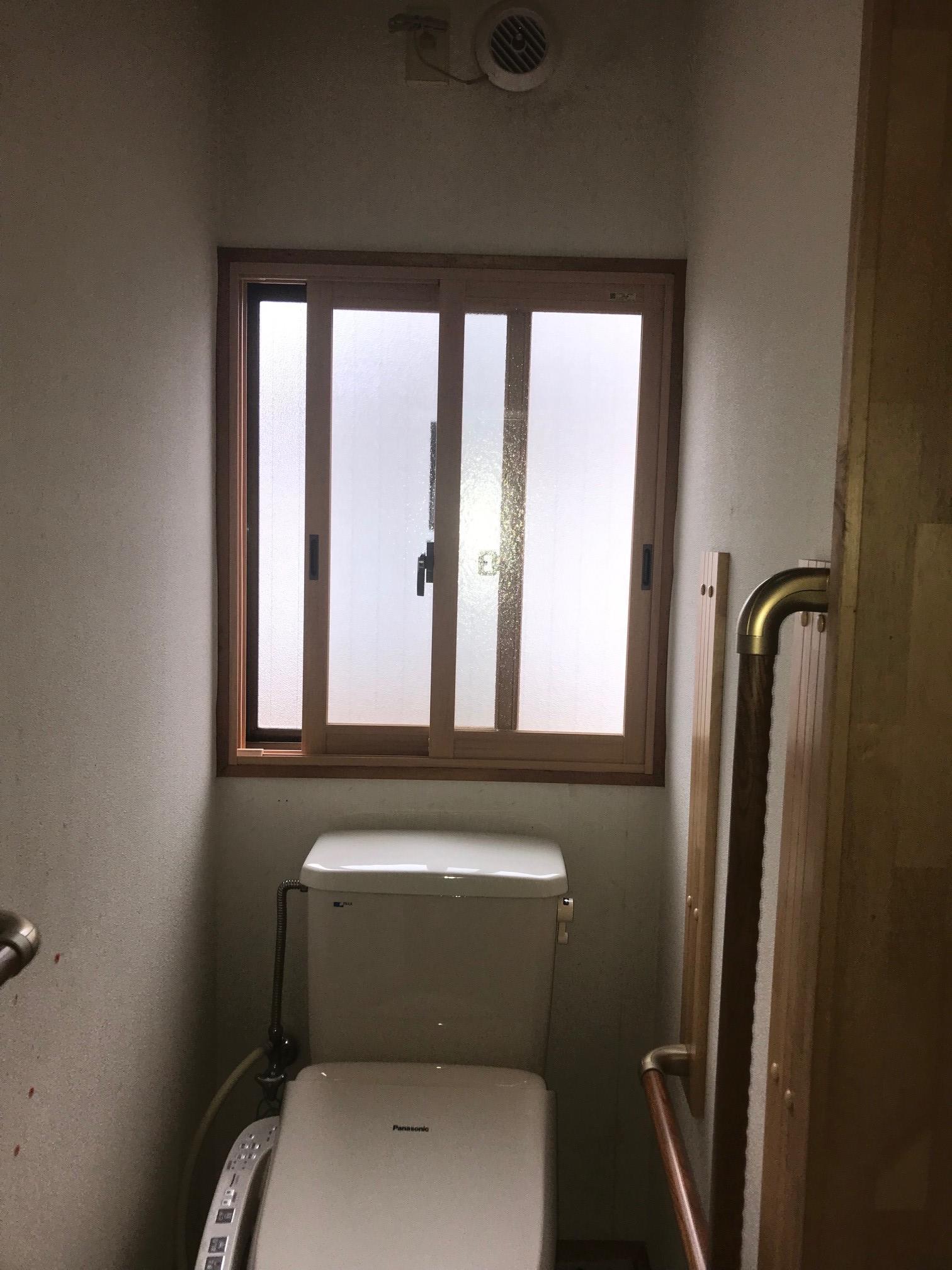 トイレ窓インプラス引違い(複層ガラス仕様)取付工事。