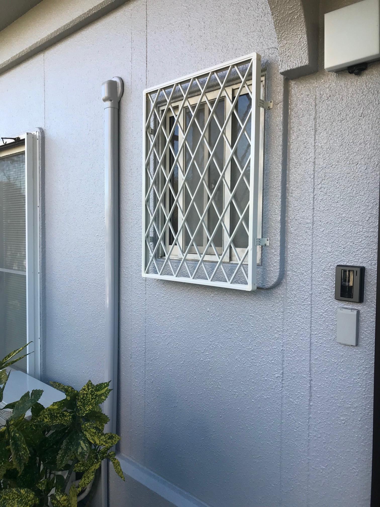面格子取付工事 ・目隠し可動ルーバー引違い窓用 ・アルミ面格子ヒシクロスC型壁付